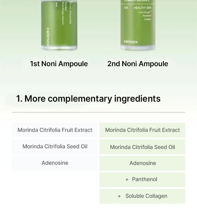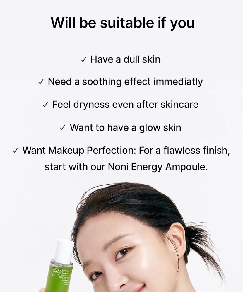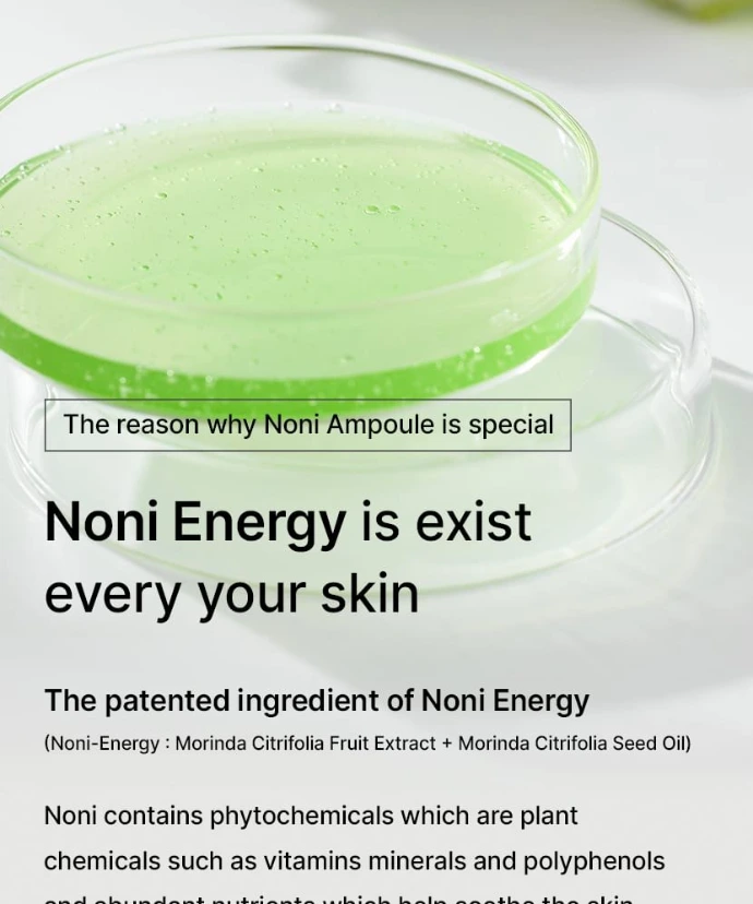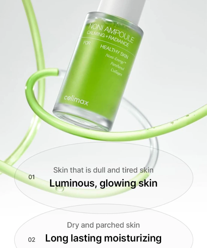 The The Real Noni Energy Ampoule from CELIMAX is a highly concentrated ampoule that revitalises, soothes, and hydrates the skin to restore its natural glow. Formulated with Noni extract, a superfruit rich in over 200 vitamins and minerals, it helps combat dullness, uneven texture, and the first signs of ageing.