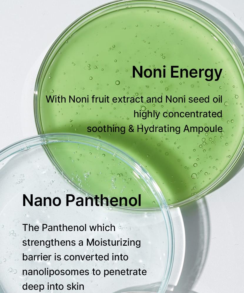 Thanks to the exclusive Noni Energy™ complex, combining extract of noni fruit and noni seed oil, the skin is nourished, soothed and protected. The Nano Panthenol intensely hydrates and strengthens the skin barrier, while the fermented collagen vegan helps to improve firmness and plump the skin. Rich in over 150 natural antioxidants, this ampoule helps to balance the complexion, improve skin texture and reveal a clearer, healthier and more radiant complexion.