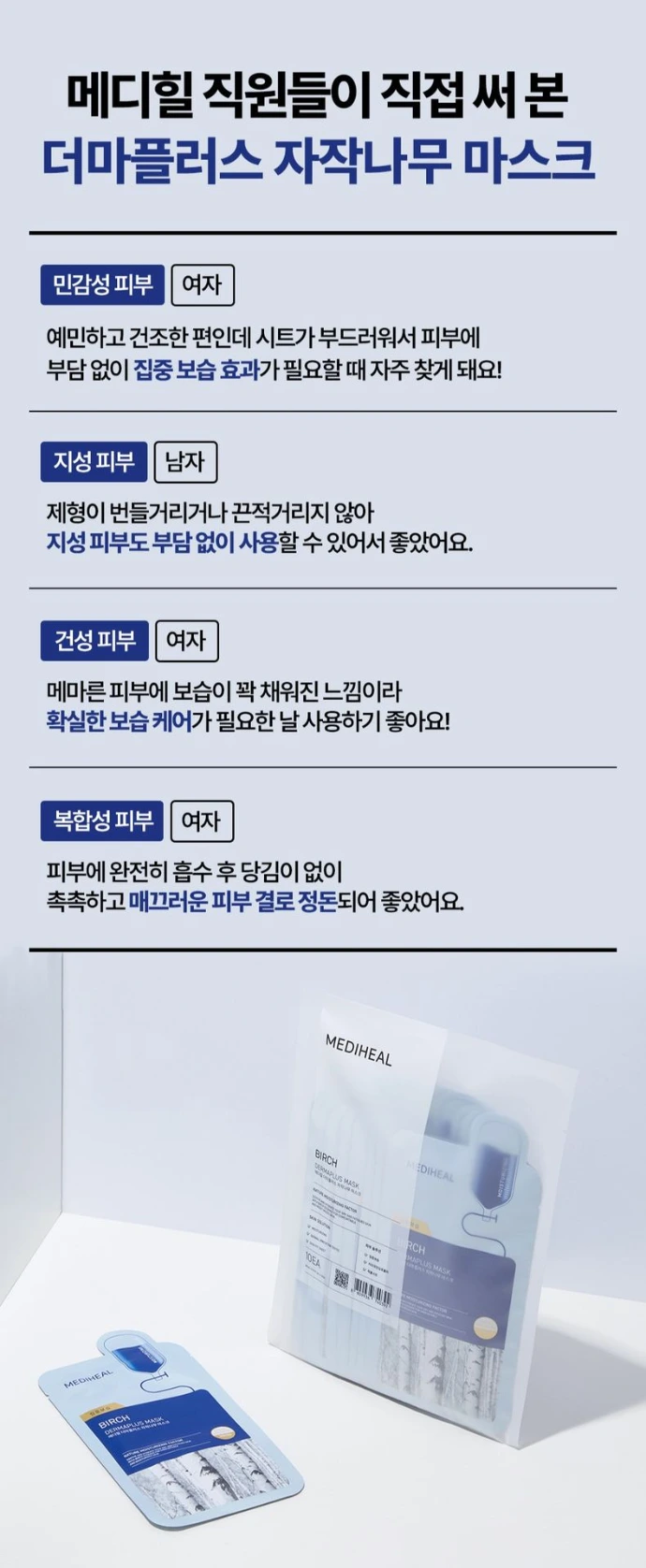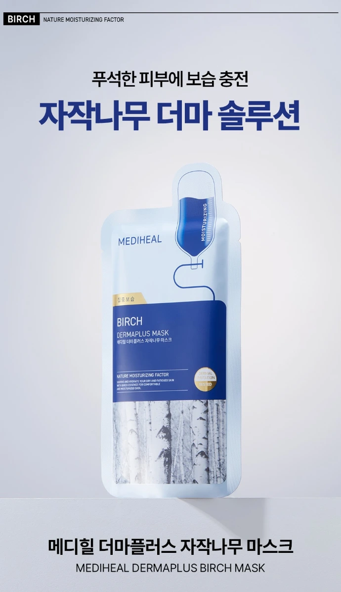 Le Dermaplus Birch Mask de MEDIHEAL est un masque tissu hydratant conçu pour revitaliser les peaux sèches et rugueuses tout en leur apportant confort et éclat.