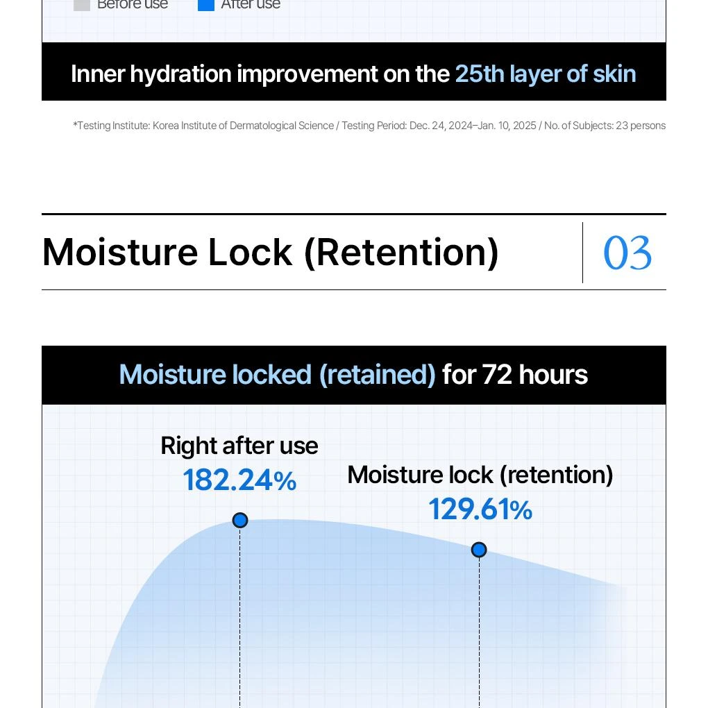Après utilisation, la peau paraît plus souple, apaisée, fraîche et visiblement repulpée, avec un effet lumineux et confortablement hydraté..