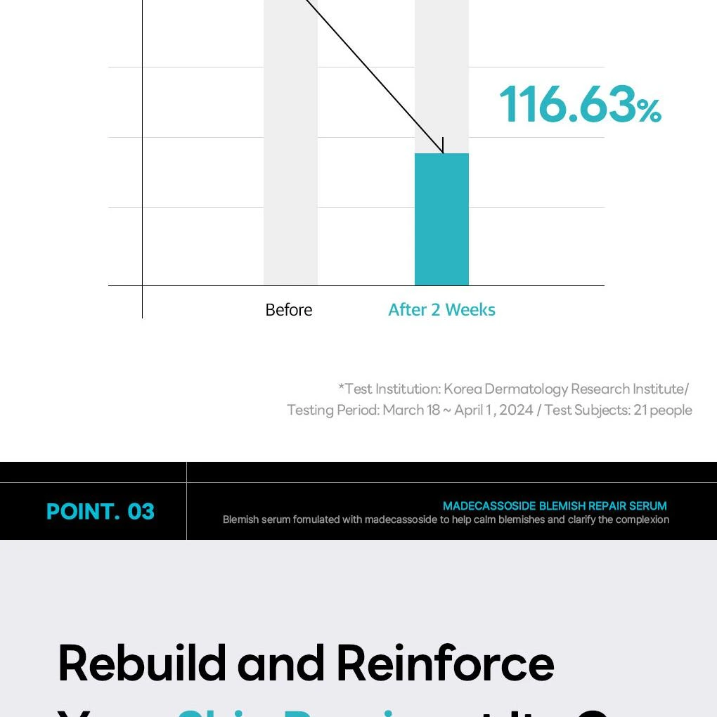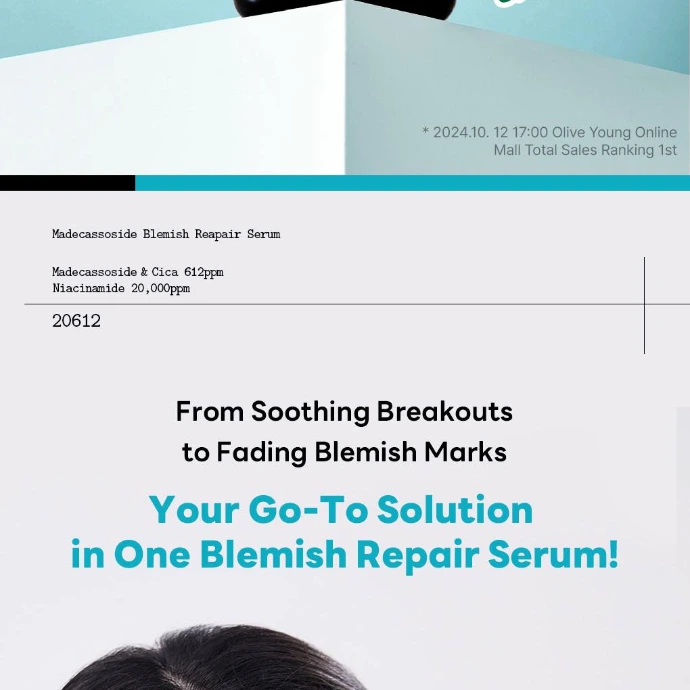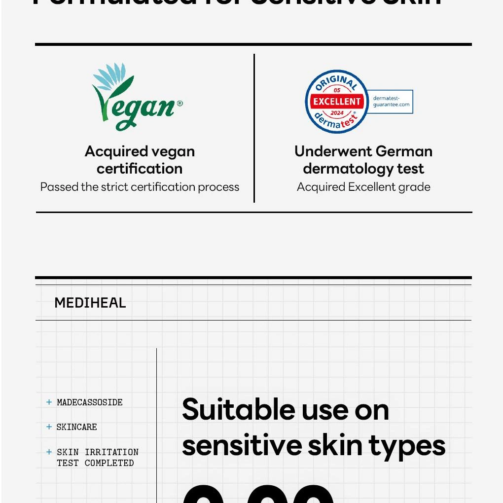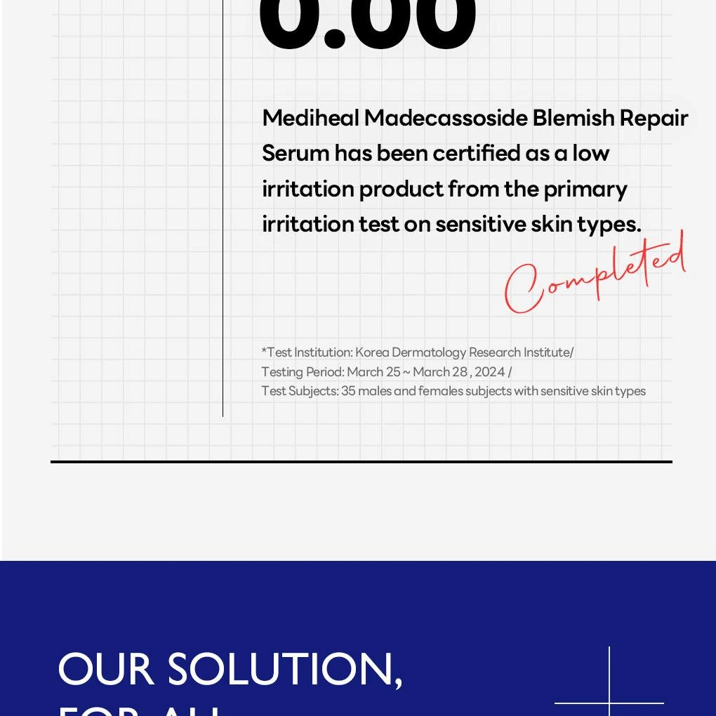 Découvrez Madecassoside Blemish Repair Serum de MEDIHEAL, un sérum léger et non gras conçu pour cibler les taches pigmentaires, les imperfections et les marques d’acné, tout en apaisant les peaux sensibles. Sa formule enrichie en Madecassoside, Centella Asiatica et Niacinamide calme les rougeurs et améliore l’apparence du teint. Adapté aux peaux sensibles, il hydrate, renforce la barrière cutanée et unifie le teint pour une peau plus lisse et équilibrée.