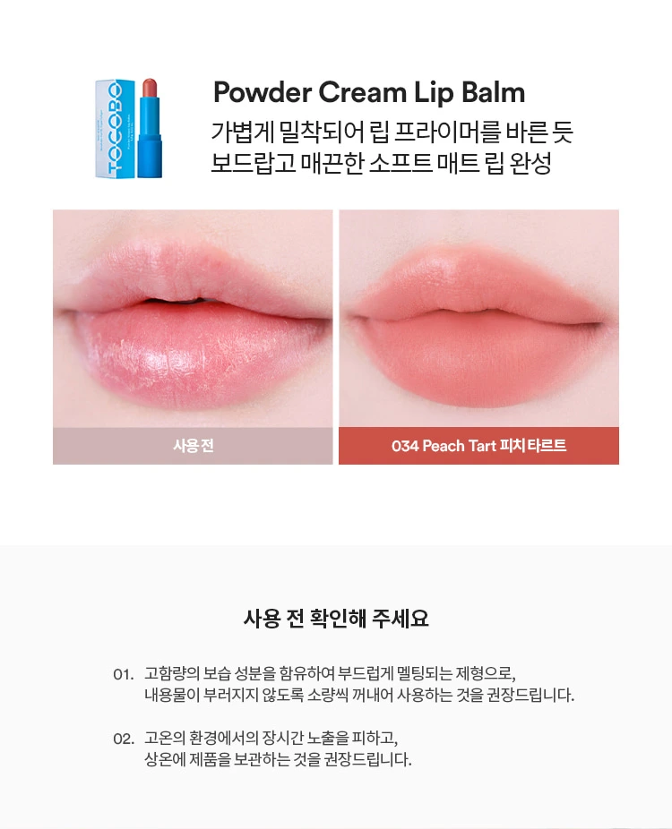 Le Powder Cream Lip Balm de Tocobo est un baume à lèvres innovant qui allie la richesse d’un rouge à lèvres à la douceur d’un soin hydratant. Grâce à sa texture crémeuse et légère, il glisse facilement sur les lèvres pour offrir une couleur intense et modulable au fini mat poudré, tout en assurant un confort longue durée.