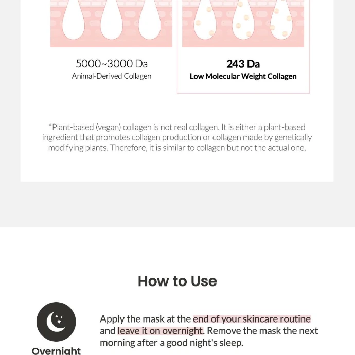 Night use: apply the mask as the last step of your skincare routine and leave it on overnight. Remove it in the morning after waking up.