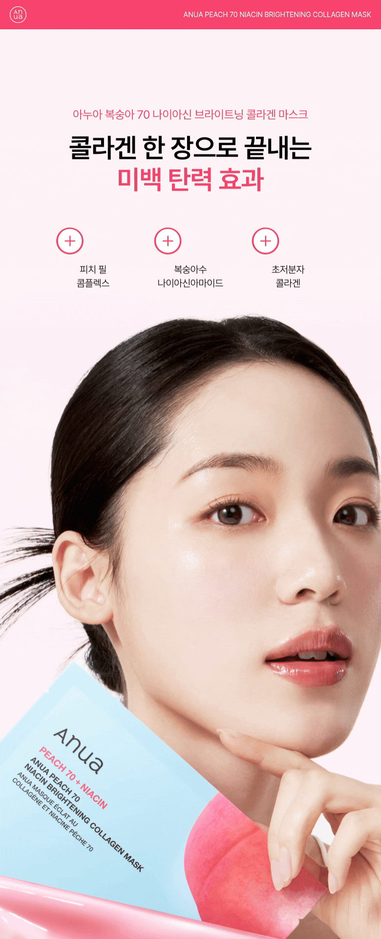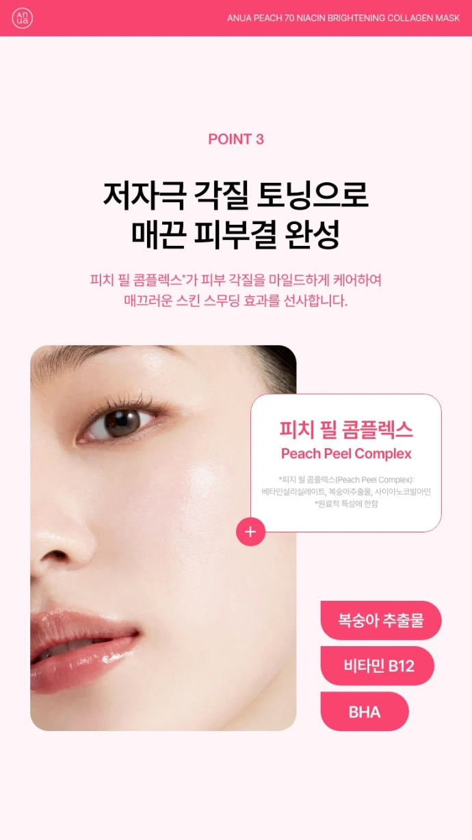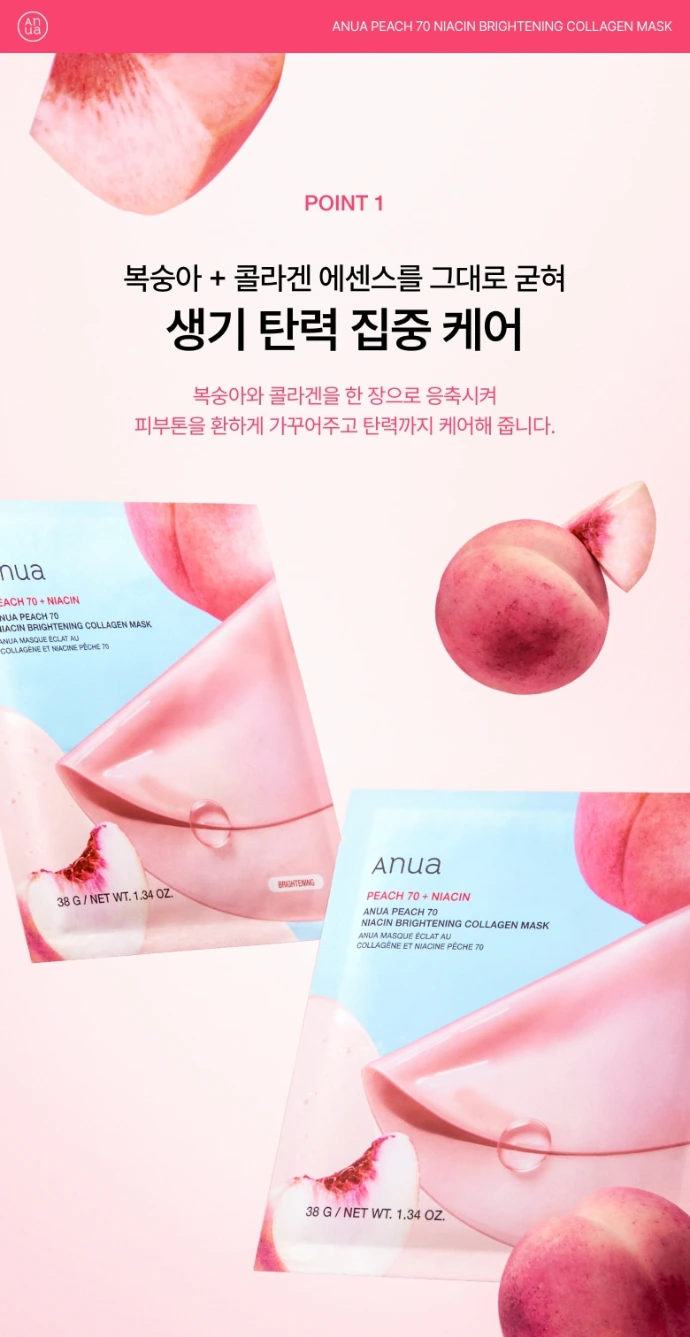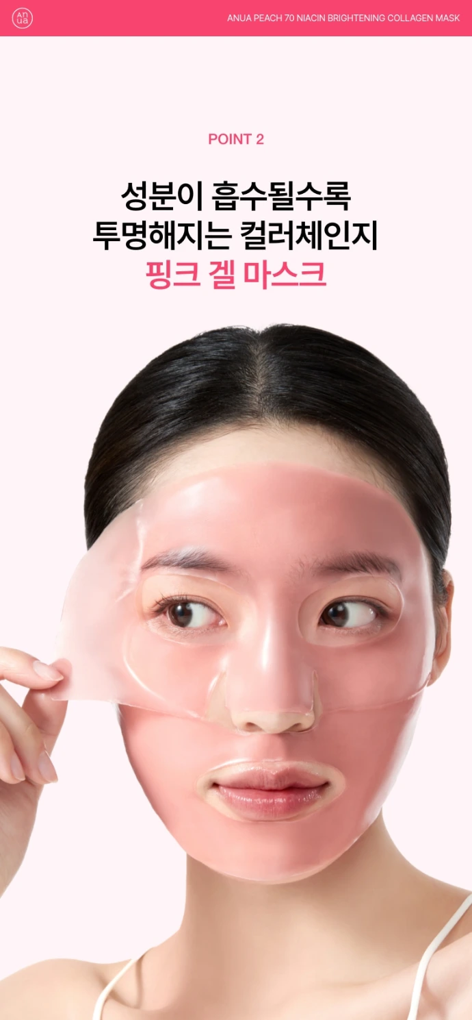 Le Peach 70 Niacin Brightening Collagen Mask d'Anua est masque visage hydrogel innovant conçu pour les peaux normales, offrant une hydratation intense, un effet glowy et une peau visiblement plus lisse et lumineuse dès le réveil.