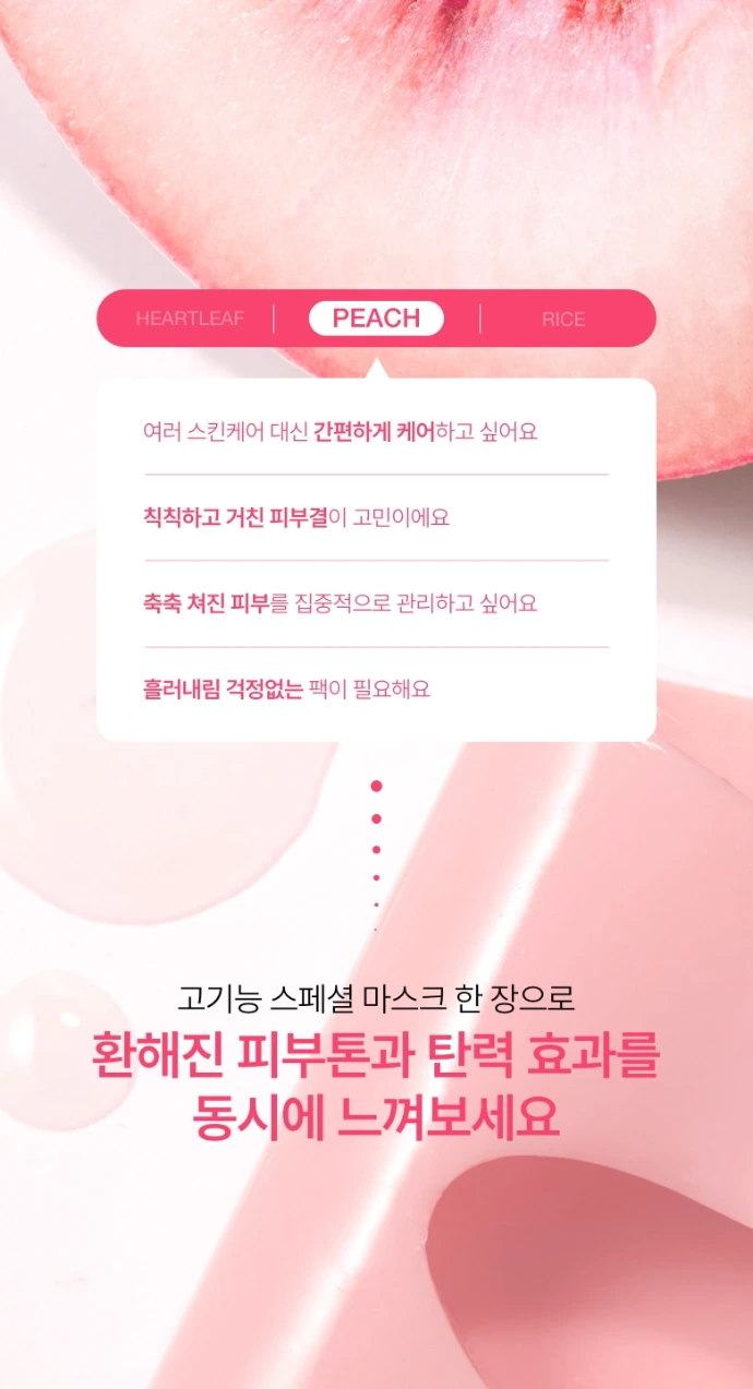 Grâce à sa formule enrichie en complexe exclusif PEACHINIA+™ (association de pêche fermentée, niacinamide et collagène), il améliore la texture de la peau tout en boostant son éclat naturel. Ce masque hydrogel ultra-fin (1 mm) épouse parfaitement le visage pour une diffusion optimale des actifs et contient 38 g de sérum concentré, permettant une action en profondeur pendant la nuit. Sa technologie unique permet au masque de devenir transparent au fur et à mesure de l’absorption, signe que la peau bénéficie pleinement des ingrédients.