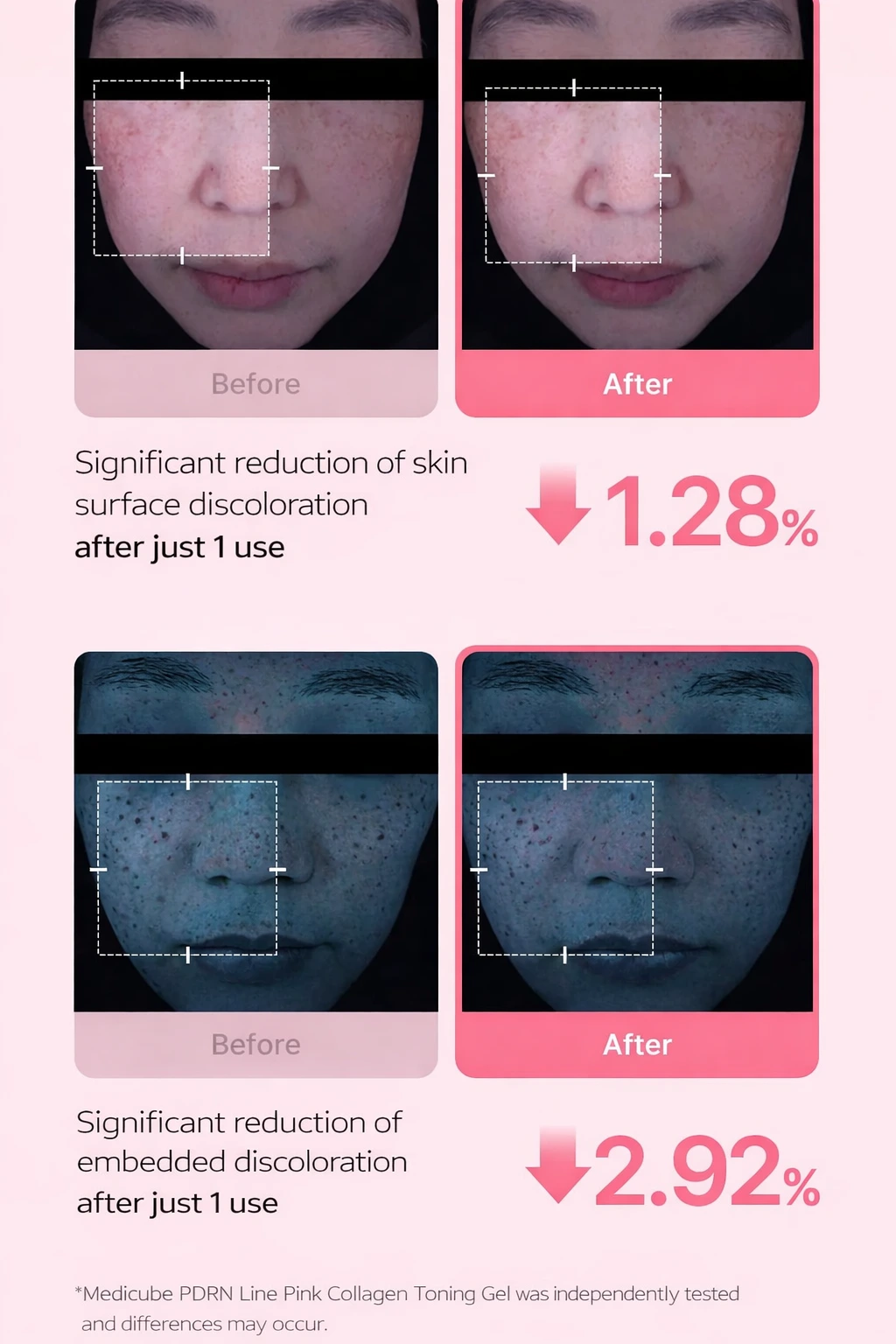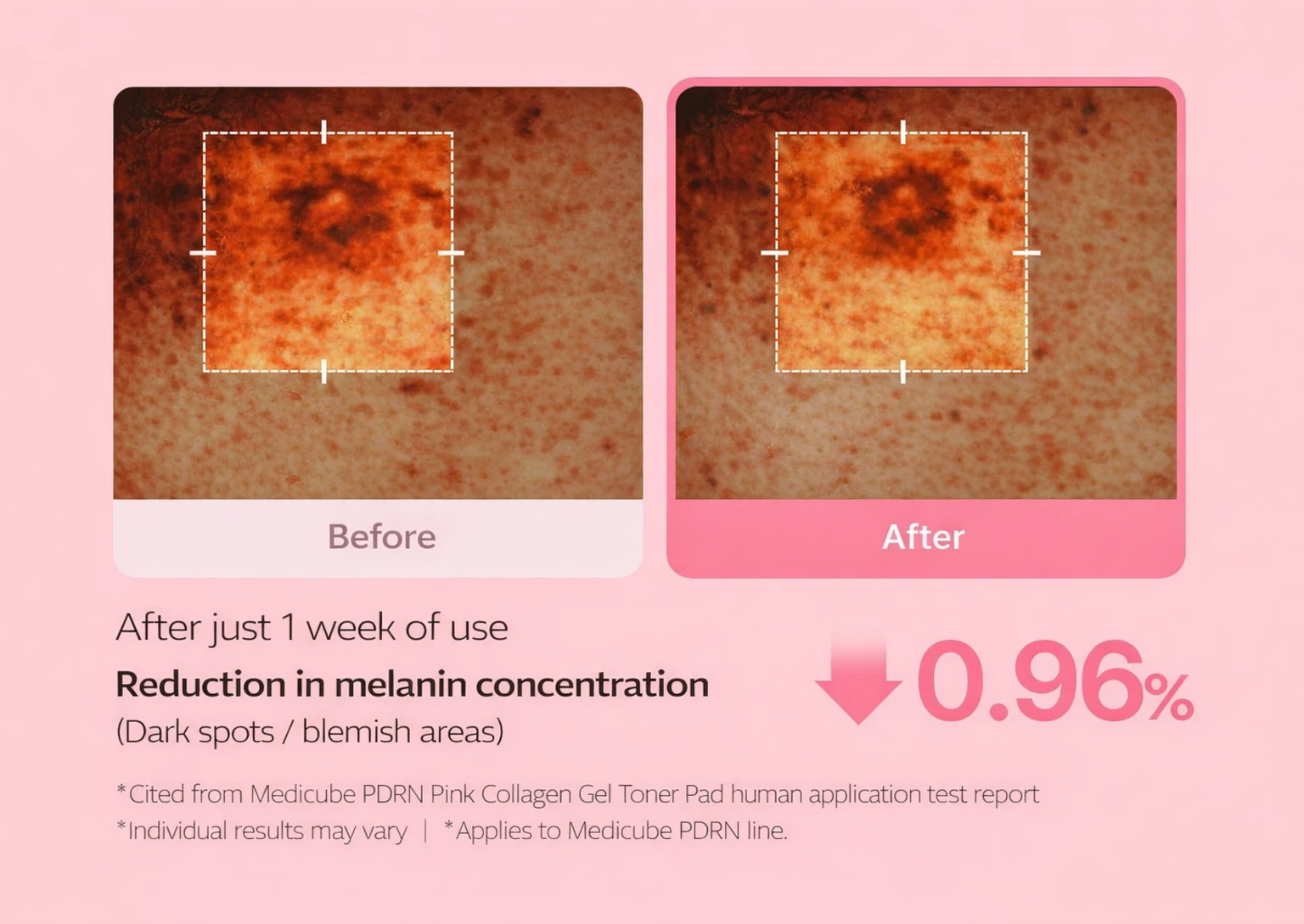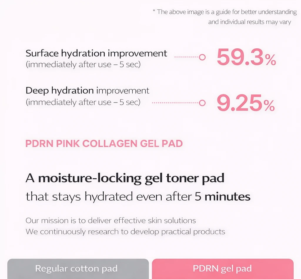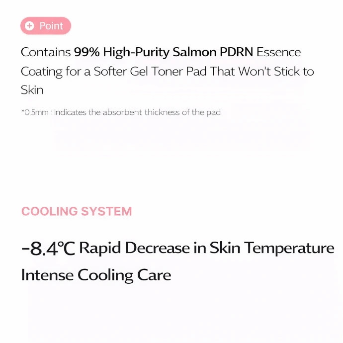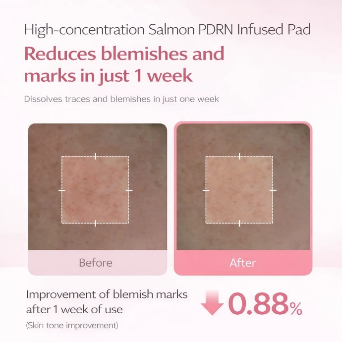 Leur formule avancée associe du PDRN (ADN de saumon), reconnu pour améliorer l’éclat et renforcer la barrière cutanée, à du collagène ultra-faible poids moléculaire (200Da) qui pénètre en profondeur pour restaurer l’élasticité et lisser la peau. Enrichis en niacinamide et madecassoside, ces pads apaisent, affinent le grain de peau et renforcent la protection naturelle de l’épiderme. Dès l’application, la peau est plus hydratée (+9,3% en 5 secondes) et visiblement plus lumineuse (+37,2%), tandis qu’une utilisation régulière aide à améliorer l’élasticité, réduire les rides et atténuer les taches et l’hyperpigmentation.