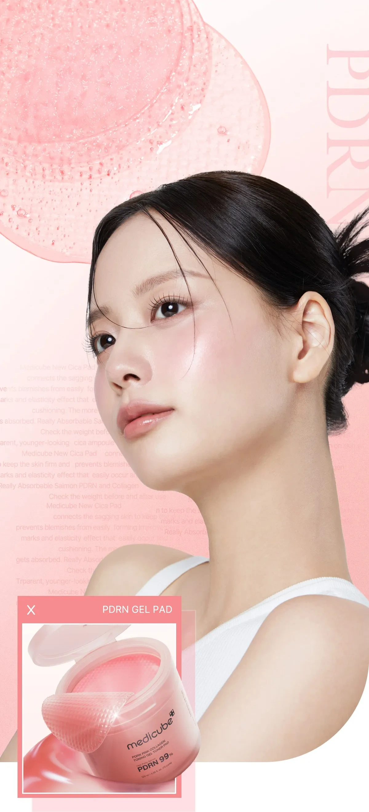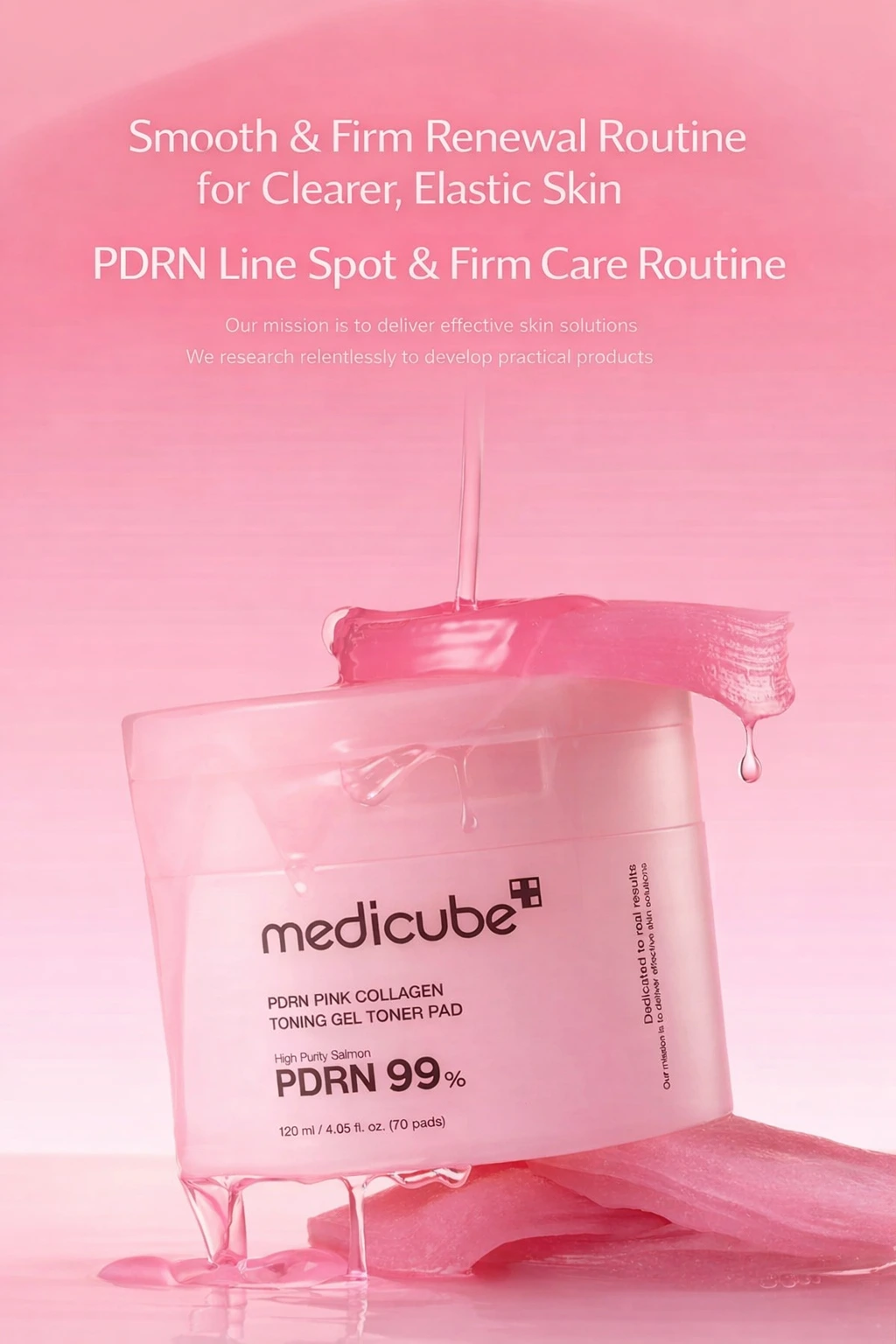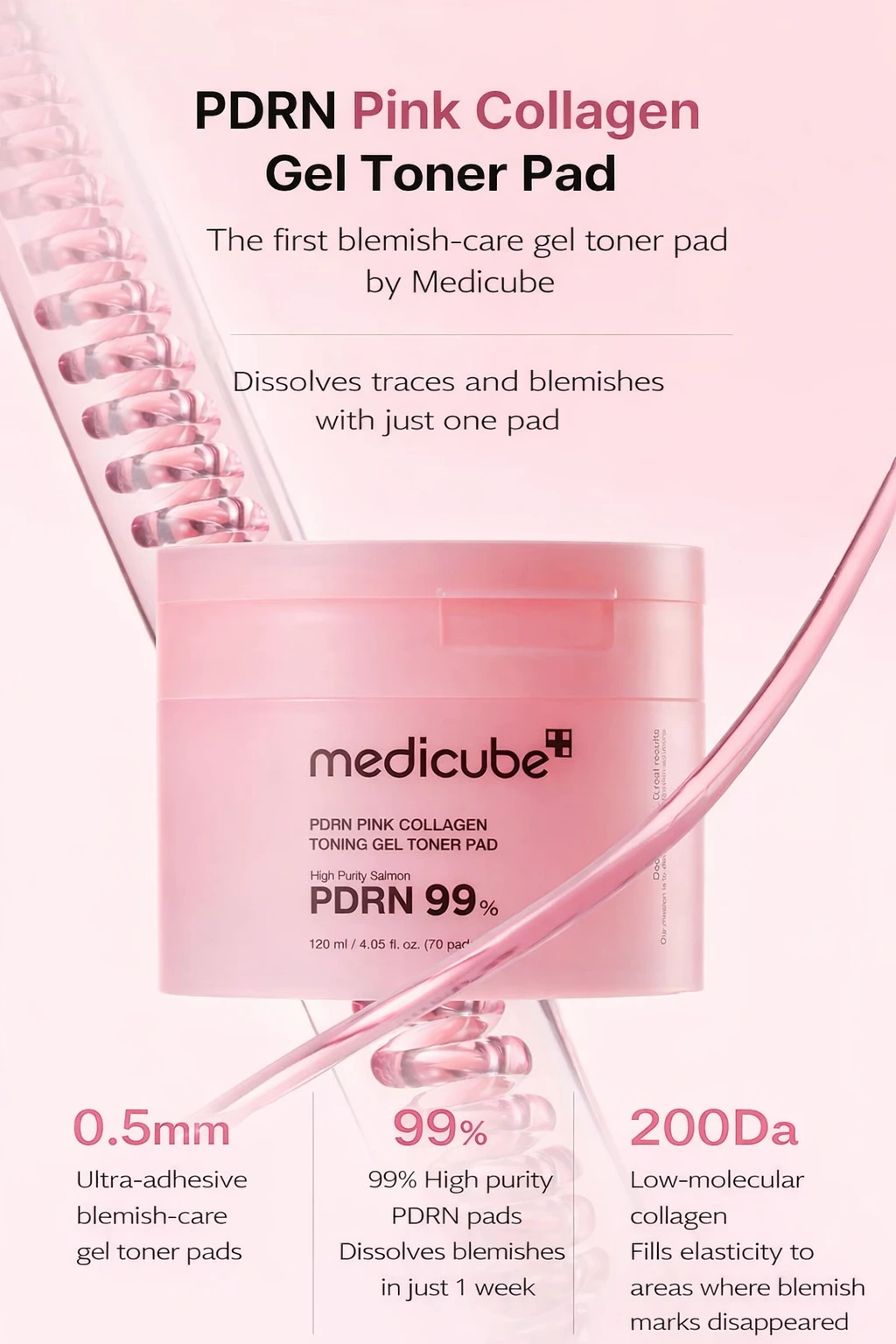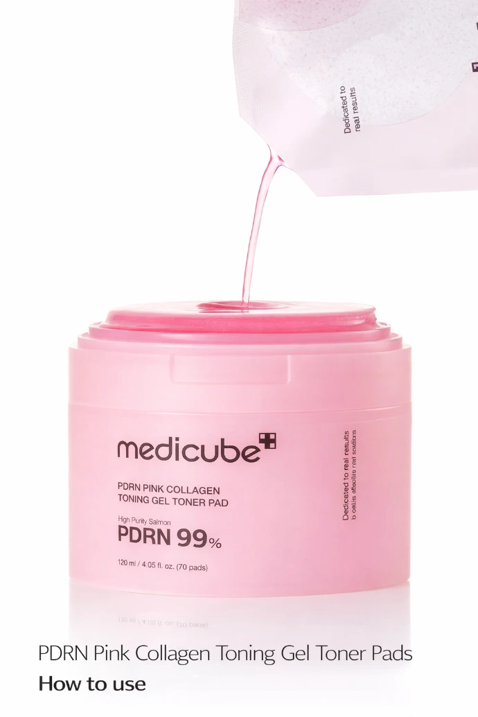 Les PDRN Pink Collagen Toning Gel Toner Pads de MEDICUBE sont des disques tonifiants innovants conçus pour offrir à la peau une hydratation intense, un effet repulpant immédiat et un éclat naturel en quelques secondes. Adaptés à tous les types de peau, même sensibles, ils ciblent efficacement les taches pigmentaires, les cicatrices d’acné, les pores visibles ainsi que le teint irrégulier et terne.