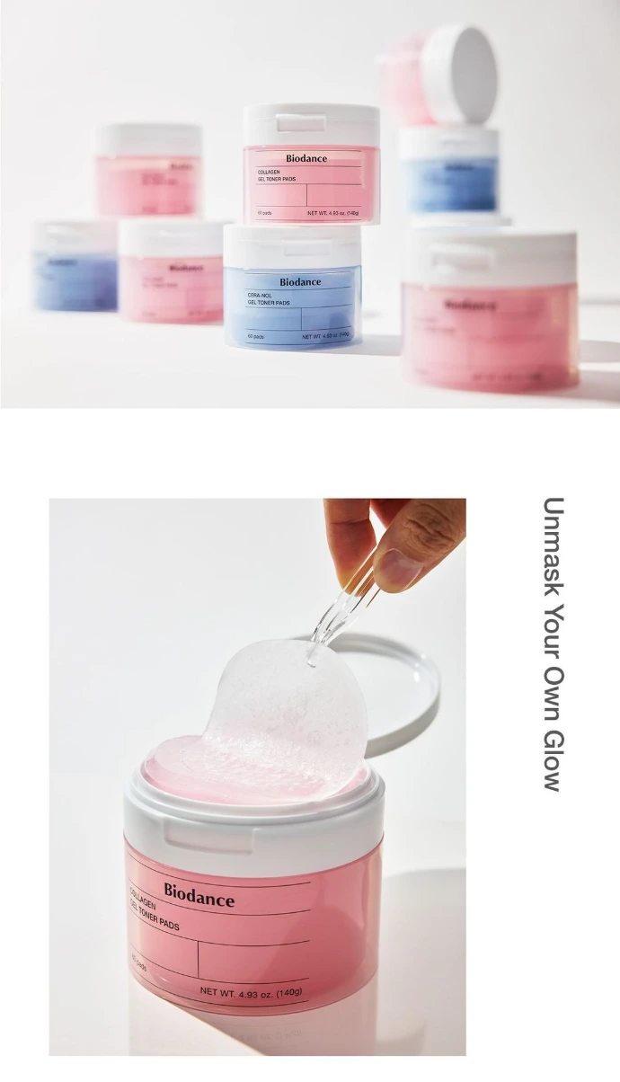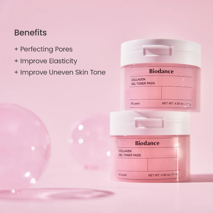 De Collagen Gel Toner Pads van BIODANCE zijn tonifiërende geldisks die zijn ontworpen om de huid intensief te hydrateren, de poriën te verkleinen en de elasticiteit van het gezicht te verbeteren. Hun innovatieve formule bevat ultra-laag moleculair gewicht collageen 243Da, fijner dan een haar, dat diep in de poriën kan doordringen om de huid te helpen verstevigen en de verschijning van poriën vanaf de eerste toepassingen te verminderen.