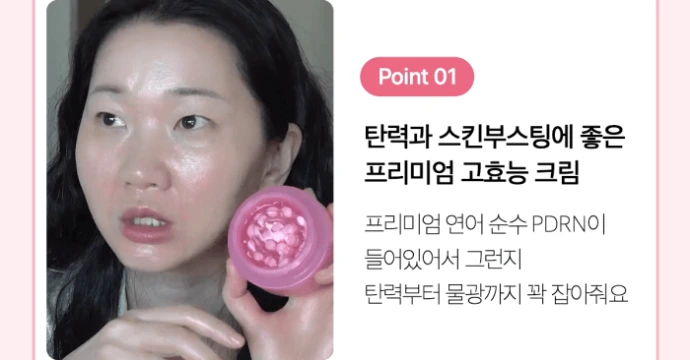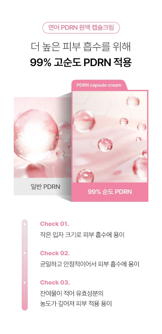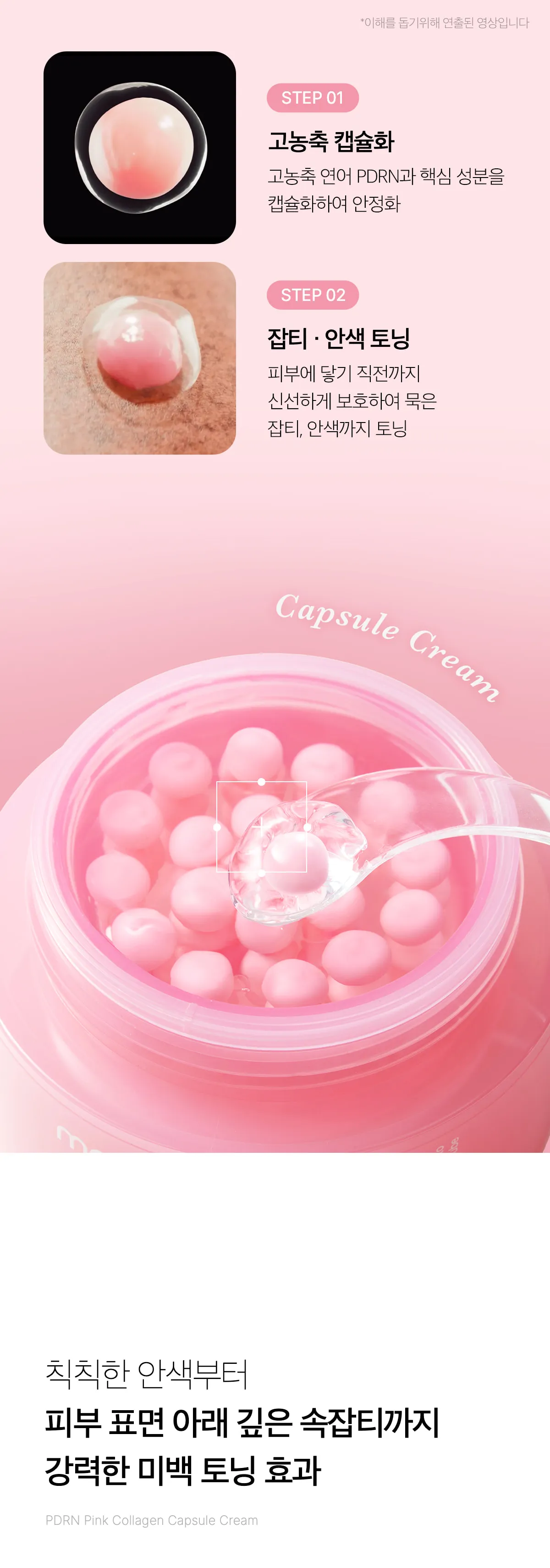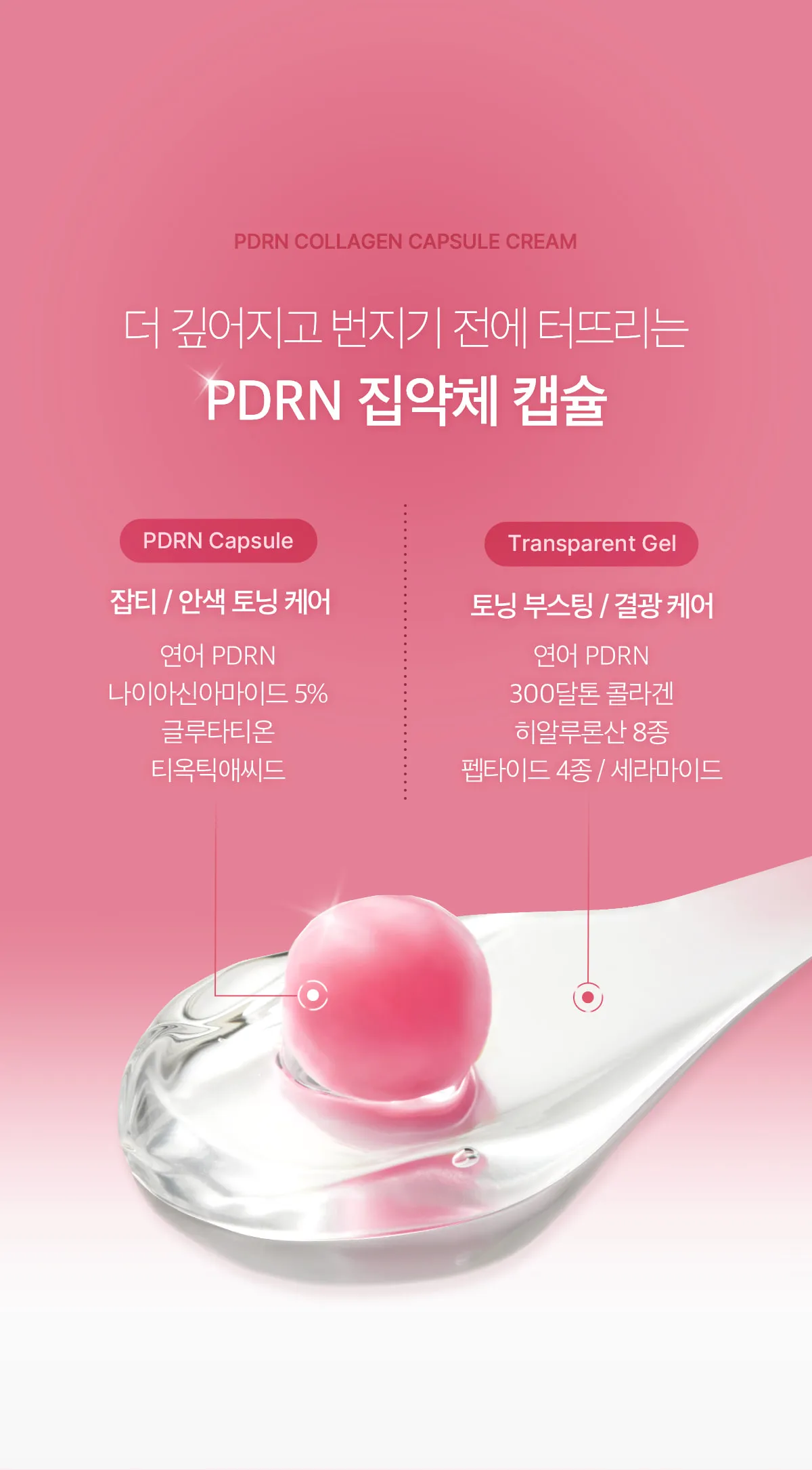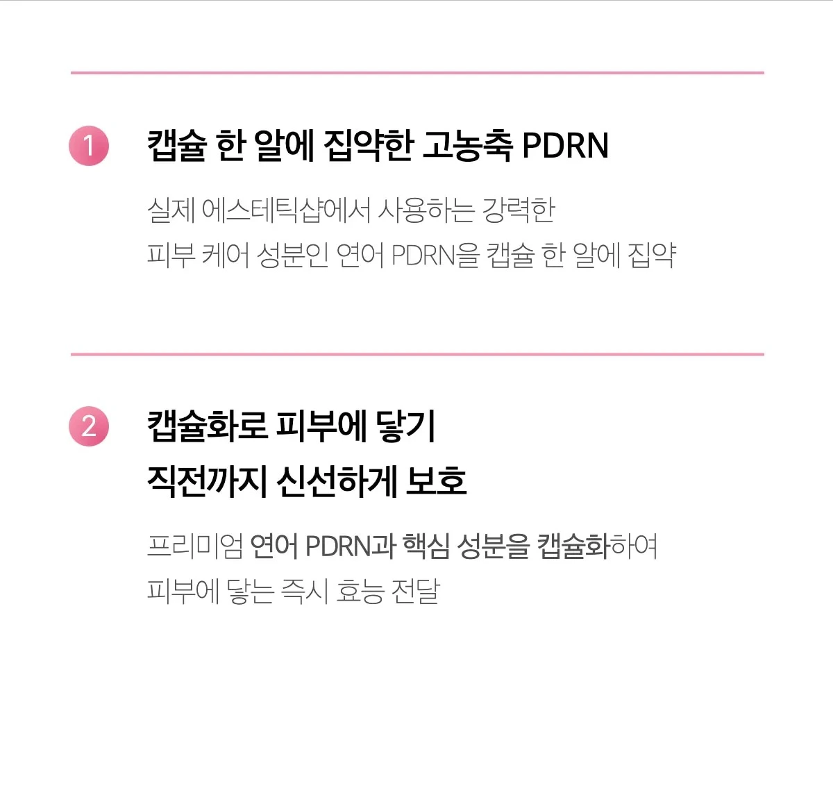 Routine recommandée (à utiliser ensemble pour de meilleurs résultats) : Appliquez le sérum PDRN (PDRN Pink Peptide Serum) sur peau propre afin de préparer la peau et booster l’efficacité des soins, puis appliquez la PDRN Capsule Cream en mélangeant les capsules et le gel selon votre type de peau pour une peau plus hydratée, lumineuse et uniforme.