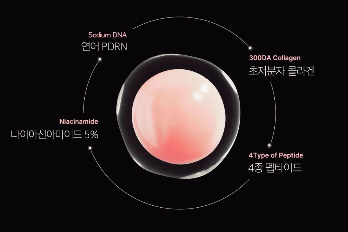 Sa technologie à double texture associe des capsules concentrées en PDRN (ADN de saumon) à un gel hydratant transparent : les capsules éclatent lors de l’application pour libérer des actifs puissants et maximiser l’absorption, offrant un effet “glass skin” immédiat
