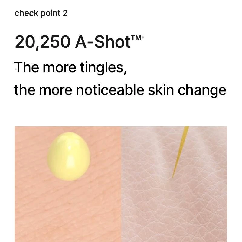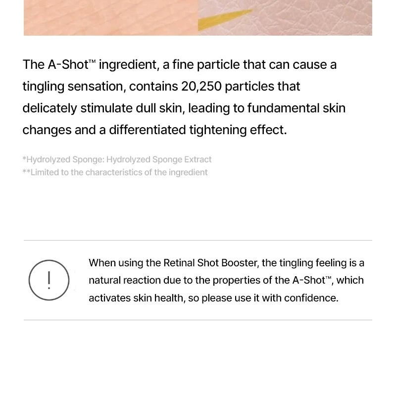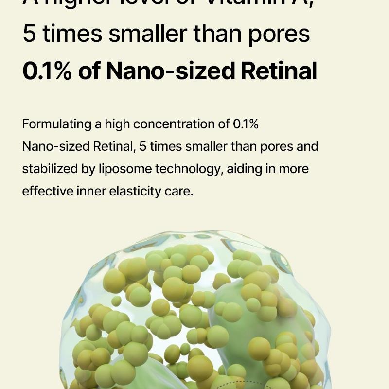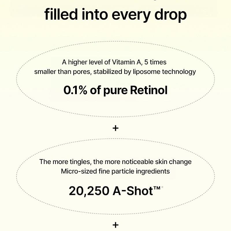 Sa formule avancée contient 0,1 % de retinal, une forme plus puissante et plus rapide que le rétinol classique, encapsulée grâce à une technologie liposomale permettant une pénétration optimale, jusqu’à 5 fois plus petite que les pores. Associé à la technologie A-Shot™ (20 250 micro-particules), ce booster améliore l’absorption des actifs en profondeur et stimule le renouvellement de la peau pour des résultats visibles.