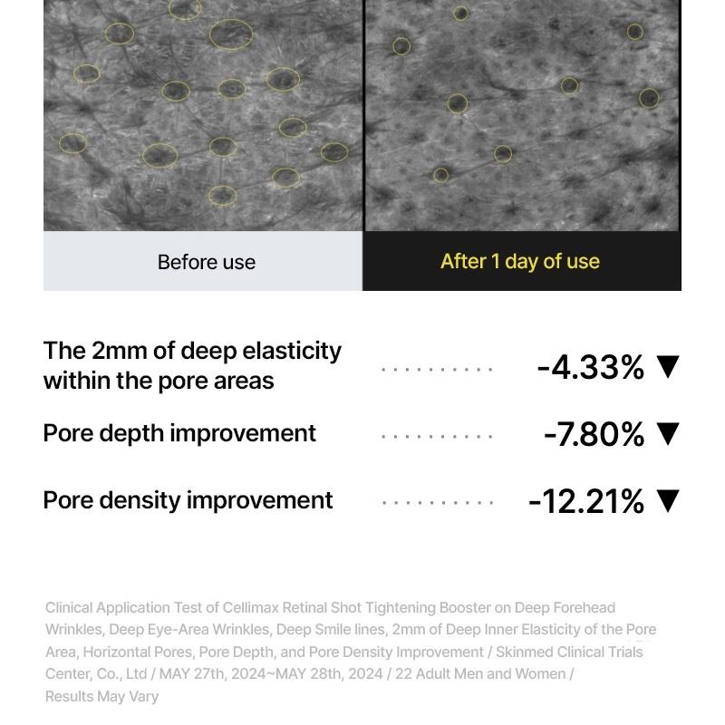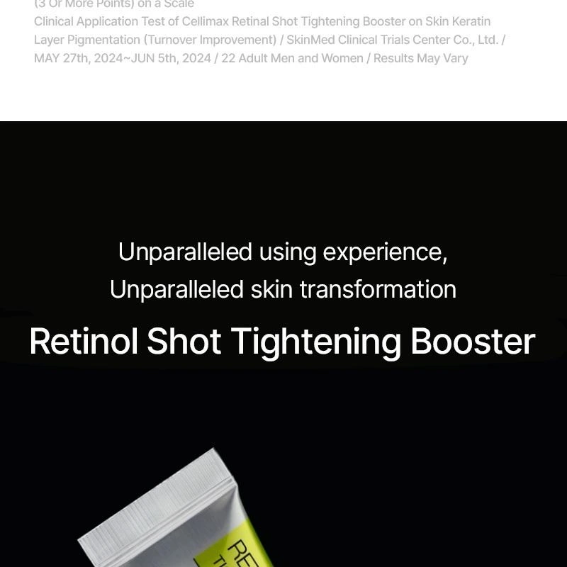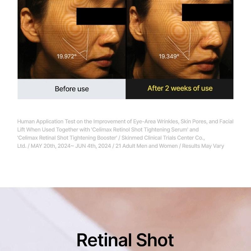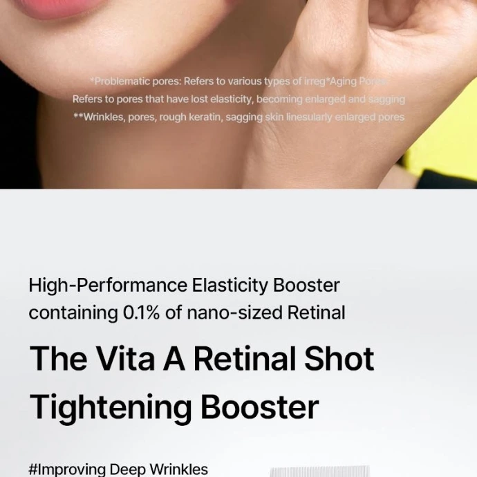 Le Vita-A Retinal Shot Tightening Booster de CELIMAX est un soin anti-âge intensif conçu pour cibler efficacement les rides profondes, les pores dilatés et la perte d’élasticité.
