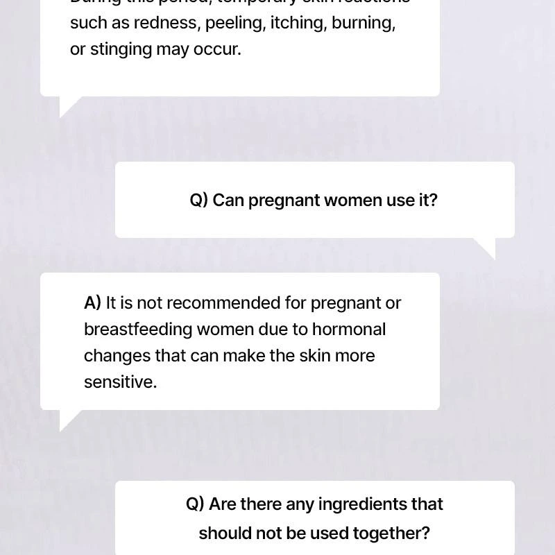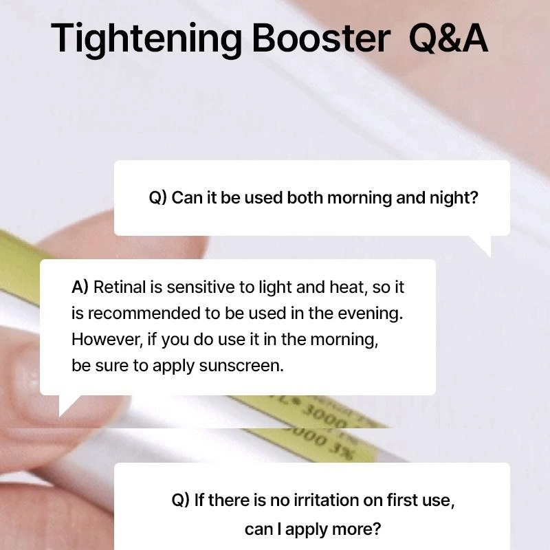 En cas de picotements ou d’irritations, diminuez la fréquence et la quantité d’application, et associez le soin à une crème hydratante apaisante pour calmer la peau. Une fois que votre peau s’est habituée, généralement à partir de la troisième semaine, vous pouvez utiliser le produit chaque soir en l’appliquant de manière uniforme sur l’ensemble du visage.