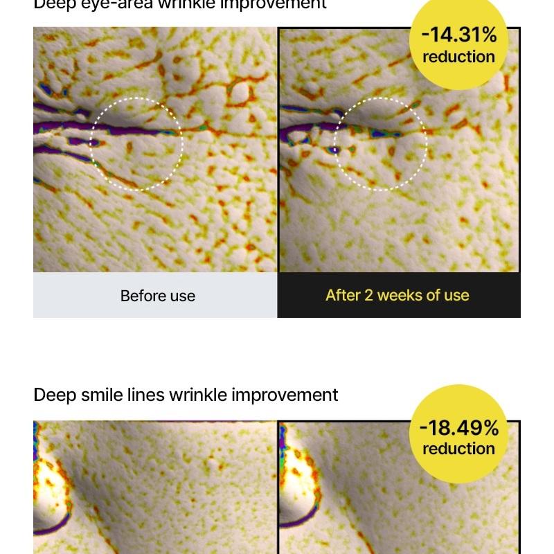 - Réduit visiblement les rides profondes (front, contour des yeux, sillons nasogéniens)