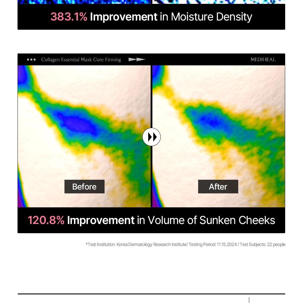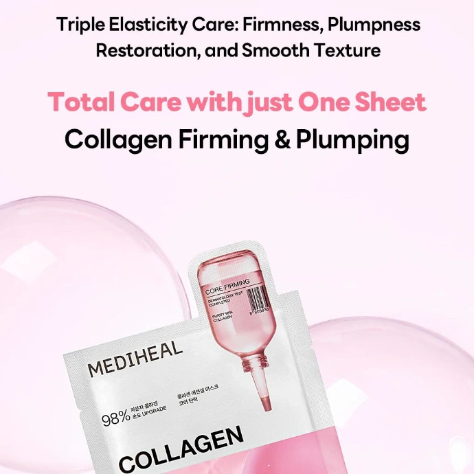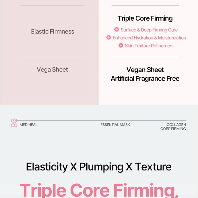 Le Collagen Essential Mask Core Firming de MEDIHEAL est un masque tissu raffermissant concentré conçu pour aider à redonner fermeté, élasticité et rebond à la peau.