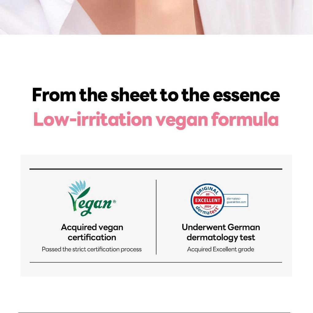Après avoir nettoyé et tonifié la peau, appliquez le masque sur le visage et ajustez-le pour qu’il épouse bien les contours. Laissez poser pendant 10 à 20 minutes, puis retirez-le. Tapotez délicatement l’essence restante sur la peau jusqu’à absorption complète. Utilisez 2 à 3 fois par semaine ou dès que la peau paraît relâchée ou déshydratée.