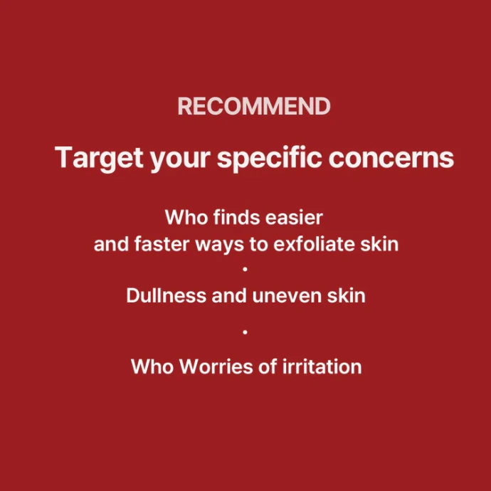 Grâce à sa formule concentrée en AHA et BHA, il offre une exfoliation efficace : les AHA éliminent les cellules mortes en surface pour lisser le grain de peau, tandis que les BHA pénètrent en profondeur pour désobstruer les pores et réduire les points noirs. Ce soin est idéal pour améliorer les irrégularités de texture, le maquillage qui accroche (“cakey”) et le manque d’éclat, tout en favorisant un teint plus uniforme et éclatant. Il s’adresse particulièrement aux personnes recherchant une solution rapide et efficace pour exfolier la peau, tout en restant adapté à ceux qui craignent l’irritation (à condition d’avoir déjà une certaine tolérance aux acides).