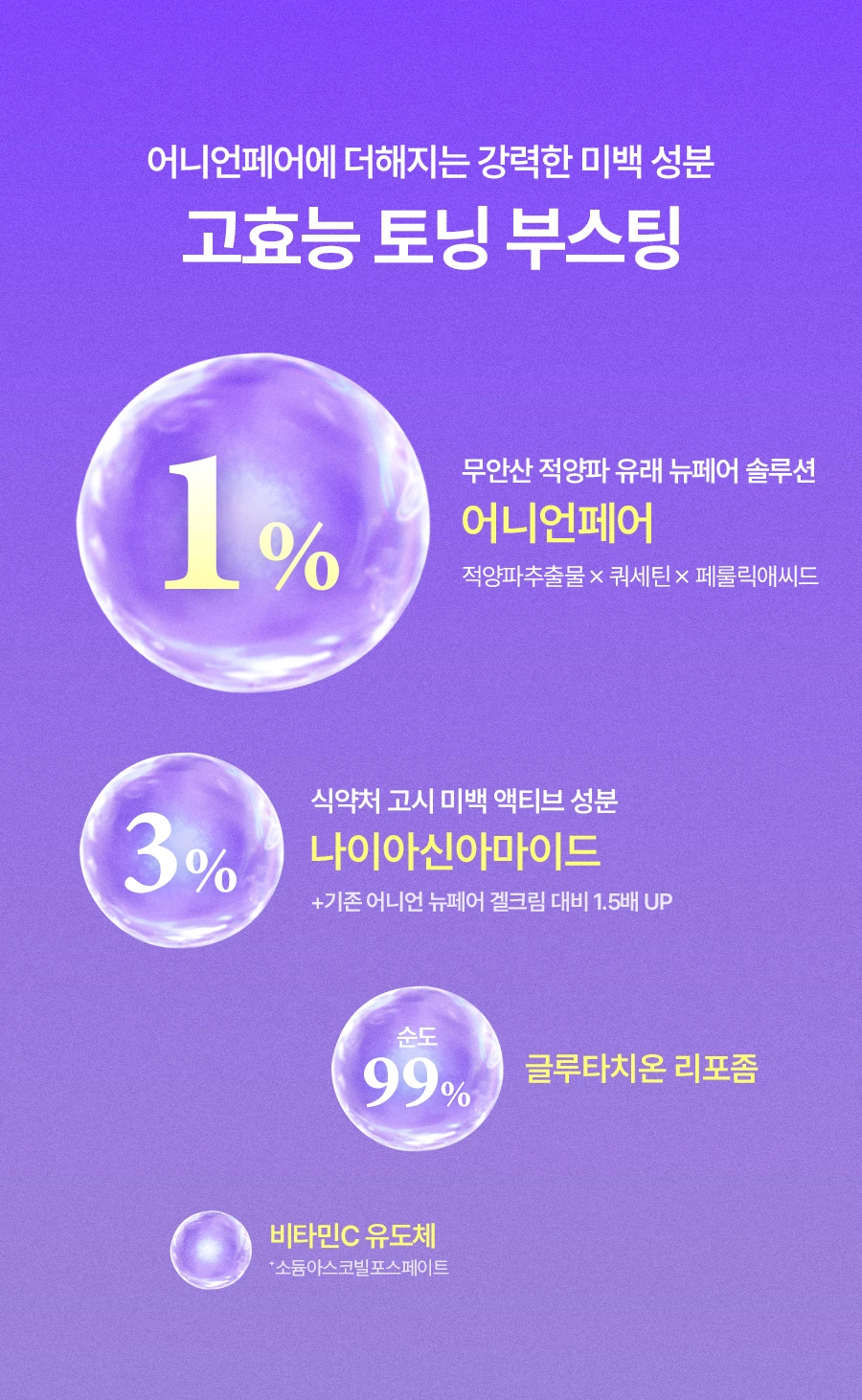 Au cœur de sa formule, l’extrait d’oignon rouge de Muan, riche en minéraux et germanium, aide à réparer la peau et cibler les imperfections, tout en apportant une forte action antioxydante grâce à sa concentration élevée en flavonoïdes et quercétine (30 à 40 fois plus que les oignons classiques). Associé à l’acide tranexamique et aux dérivés de vitamine C, il contribue à atténuer l’hyperpigmentation et unifier le teint. La présence de Sodium Heparin et d’un complexe apaisant permet de calmer efficacement les peaux sensibilisées, tandis que les trois types d’acide hyaluronique assurent une hydratation profonde et durable, laissant la peau souple, repulpée et lumineuse.