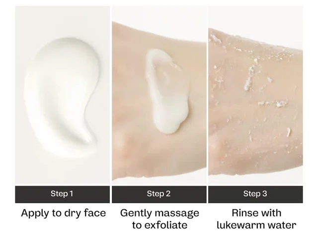 Après avoir nettoyé votre visage, appliquez une quantité appropriée de produit sur peau sèche, en évitant le contour des yeux et des lèvres. Massez délicatement la peau en effectuant des mouvements circulaires afin d’éliminer les cellules mortes et les impuretés, puis rincez abondamment à l’eau tiède.