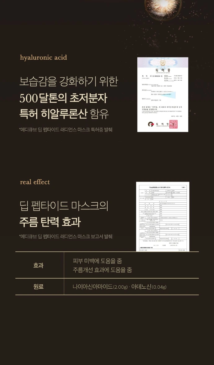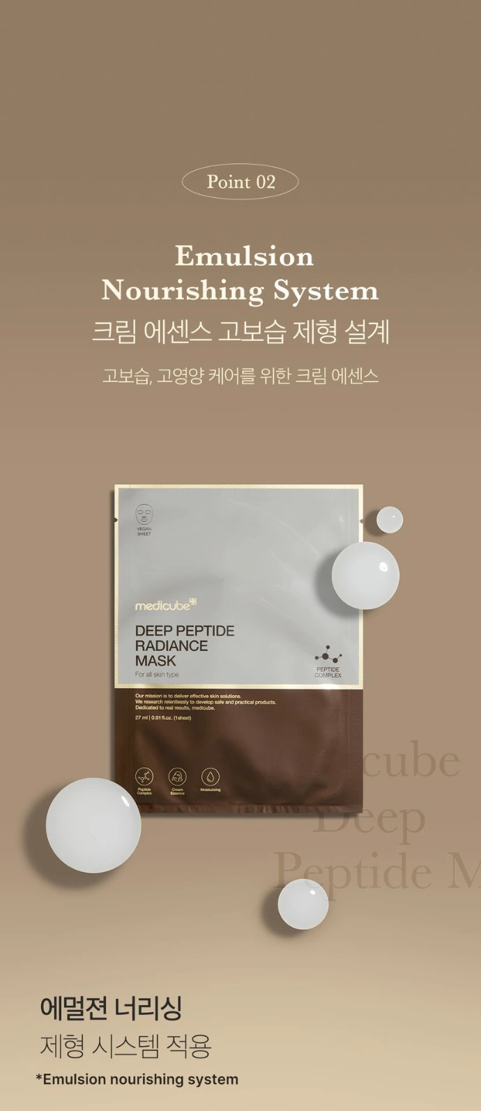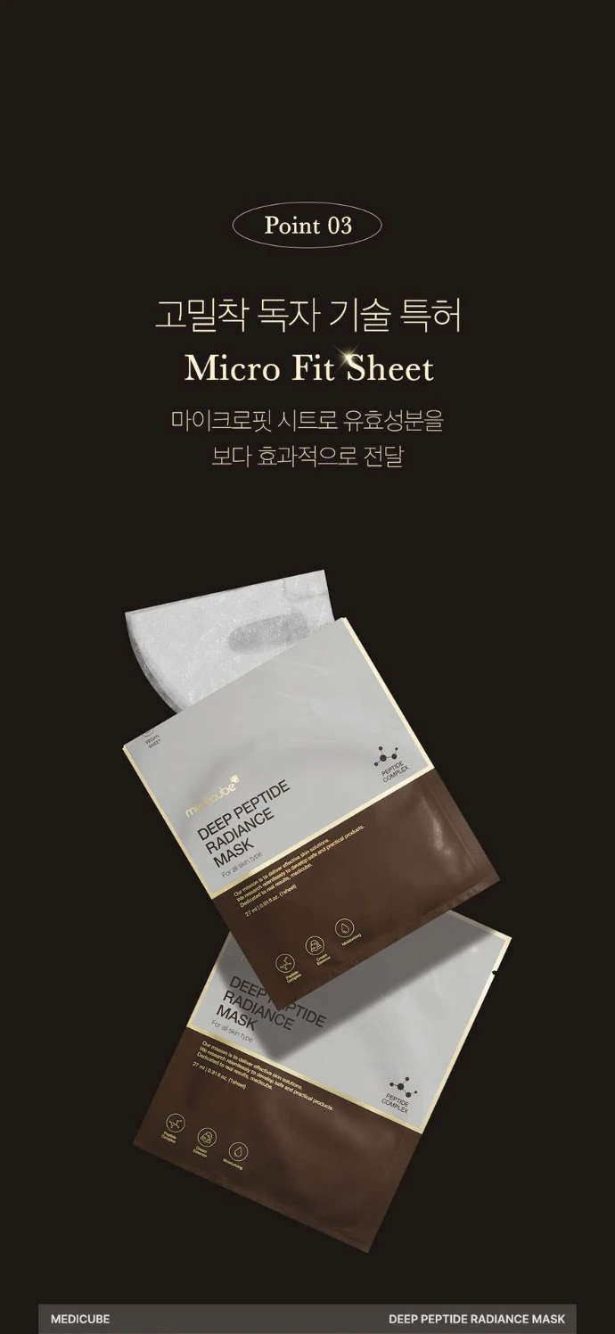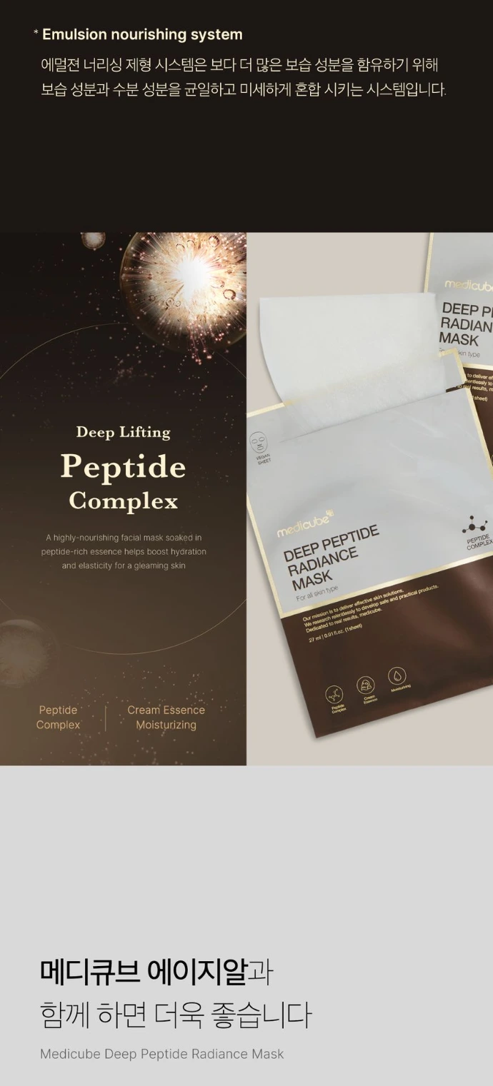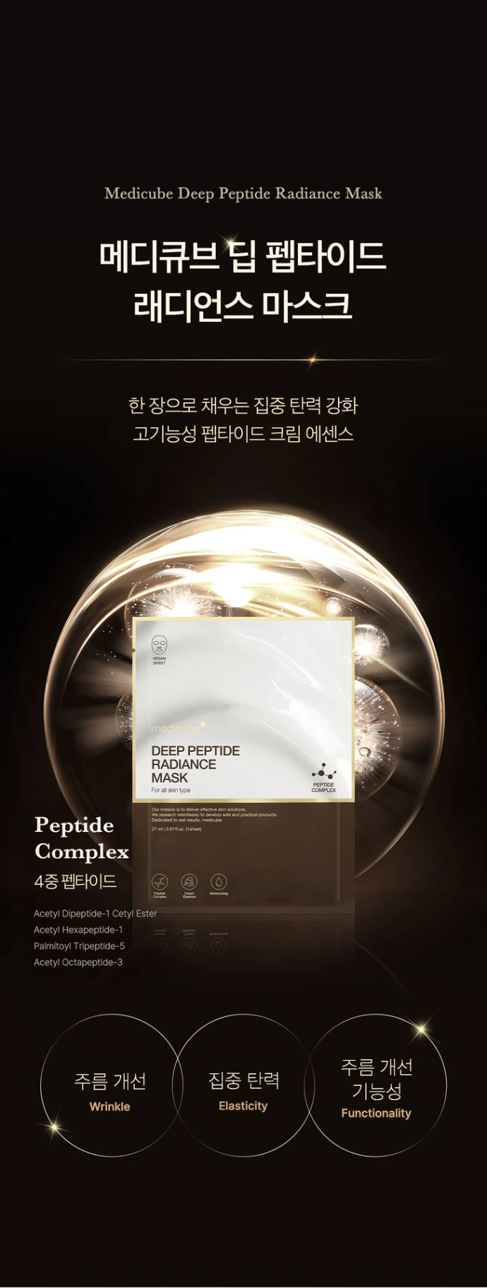 Le Deep Peptide Radiance Mask de MEDICUBE est un masque visage haute performance conçu pour réduire les rides, raffermir la peau et raviver les teints ternes et fatigués