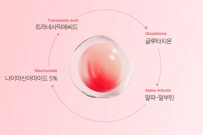 eau, glycérine, niacinamide (50 000 ppm), méthylpropanediol, propanediol, 1,2-hexanediol, dipropylène glycol, triglycéride caprylique/caprique, glucoside de glycéryle, butylène glycol, arginine, palmitate d'éthylhexyle, carbomère, alcool cétylique, olivate cétylique, olivate de sorbitan, C12-14 alketh-12, copolymère d'acryloyldiméthyltaurate d'ammonium/VP, siméthicone, glycéryle éthylhexyle, extrait de fleur de melia azadirachta, extrait de feuille de melia azadirachta, adénosine, polyacrylate-13, disodium EDTA, cyanocobalamine, citrate de triéthyle, bétaïne, polyisobutène, stéarate de glycéryle, gomme de sclérotium hydrolysée, acide tranexamique, extrait de fruit d'abelmoschus esculentus (gombo), panthénol, extrait de fruit de coccinia indica, extrait de corallina officinalis, polysorbate 20, isostéarate de sorbitan, glutathion, extrait de fruit de fragaria vesca (fraise), extrait de coque de castanea crenata (châtaigne), extrait de pelure de citrus junos, extrait d'écorce/de feuille de betula platyphylla japonica, huile de graine de ricinus communis (ricin), bisabolol, acide férulique, huile de feuille de cymbopogon citratus, huile de fruit/de graine d'illicium verum (anis), octyldodécanol, acide hyaluronique hydrolysé, acide ascorbique 3-O-éthyle, hyaluronate de sodium, alpha-arbutine, lécithine hydrogénée, céramide NP, hyaluronate de hydroxypropyltrimonium, glycol caprylique, hyaluronate de sodium acétylé, acide hyaluronique, hyaluronate de sodium en crosspolymère, hyaluronate de sodium hydrolysé, hyaluronate de potassium