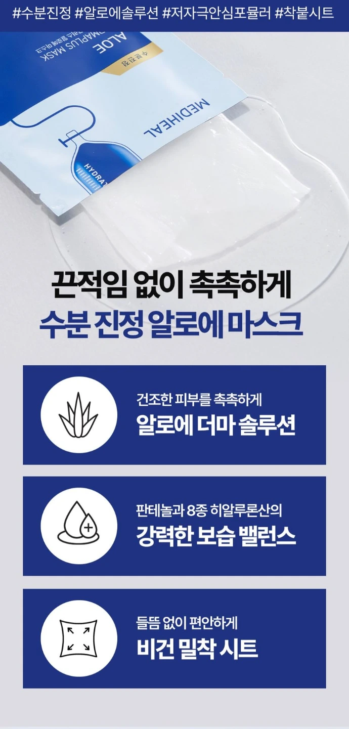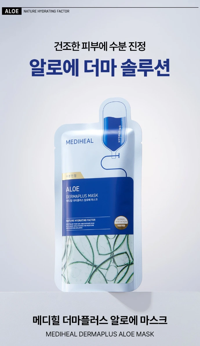 Le Dermaplus Aloe Mask de MEDIHEAL est un masque tissu hydratant et apaisant spécialement conçu pour rafraîchir et réconforter les peaux échauffées ou stressées.
