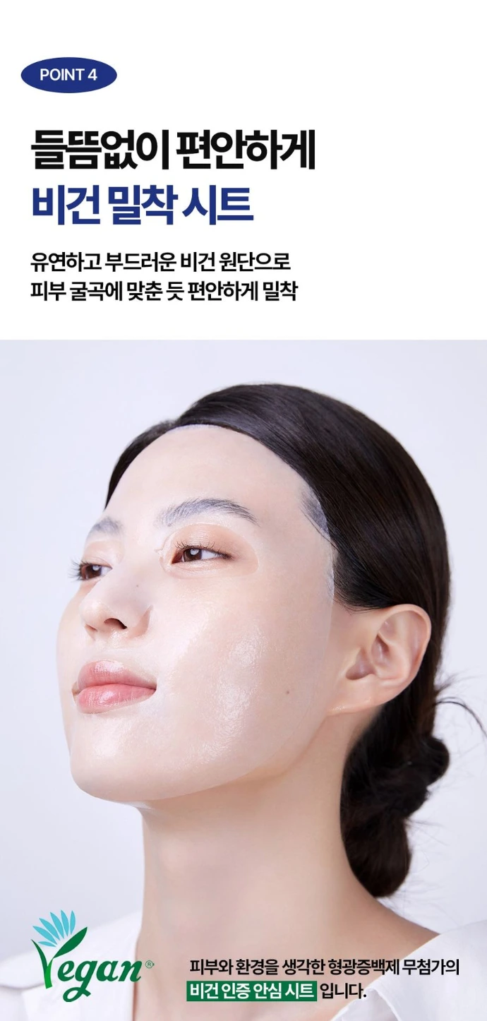 Son tissu certifié vegan, doux et sans azurants fluorescents, épouse parfaitement les contours du visage pour une diffusion uniforme des actifs et un confort optimal.