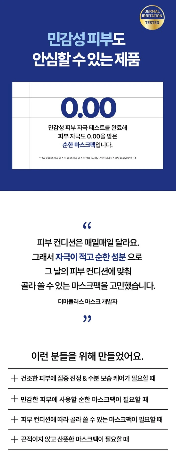 Testé cliniquement avec un indice d’irritation de 0,00, ce masque est hypoallergénique et convient à tous les types de peau, même sensibles.