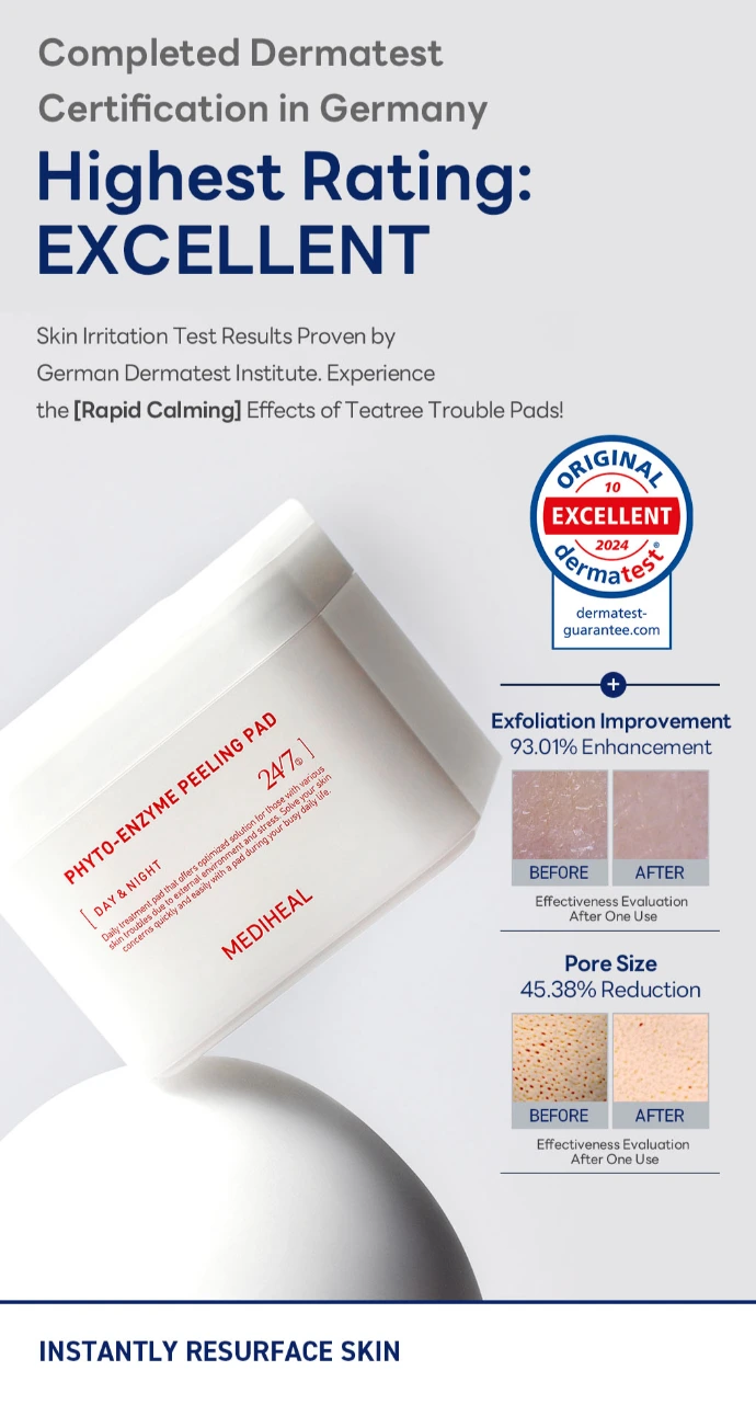 Adaptés même aux peaux sensibles et certifiés vegan, les Phyto-Enzyme Peeling Pads constituent une solution simple pour retrouver une peau plus douce, des pores visiblement affinés et un teint éclatant, avec jusqu’à 93,01 % des cellules mortes éliminées après une seule utilisation selon les tests d’efficacité.