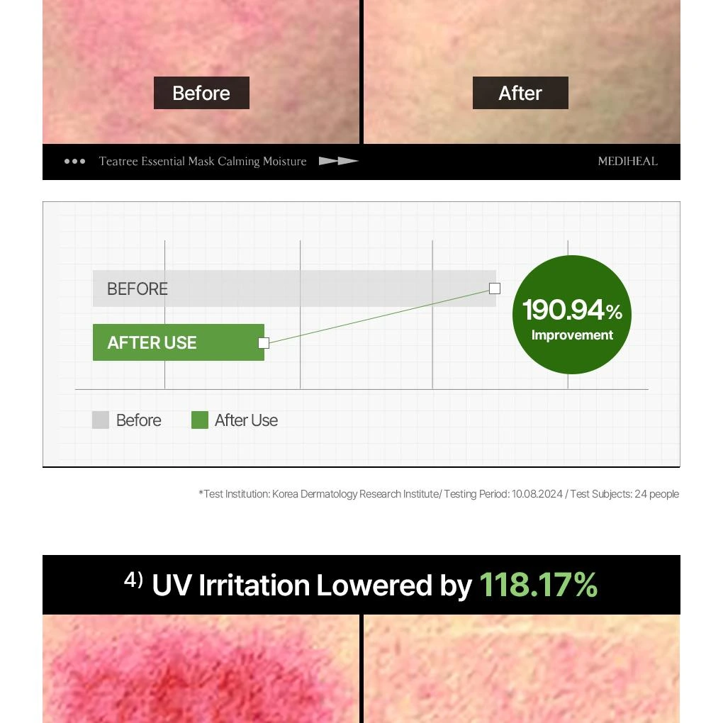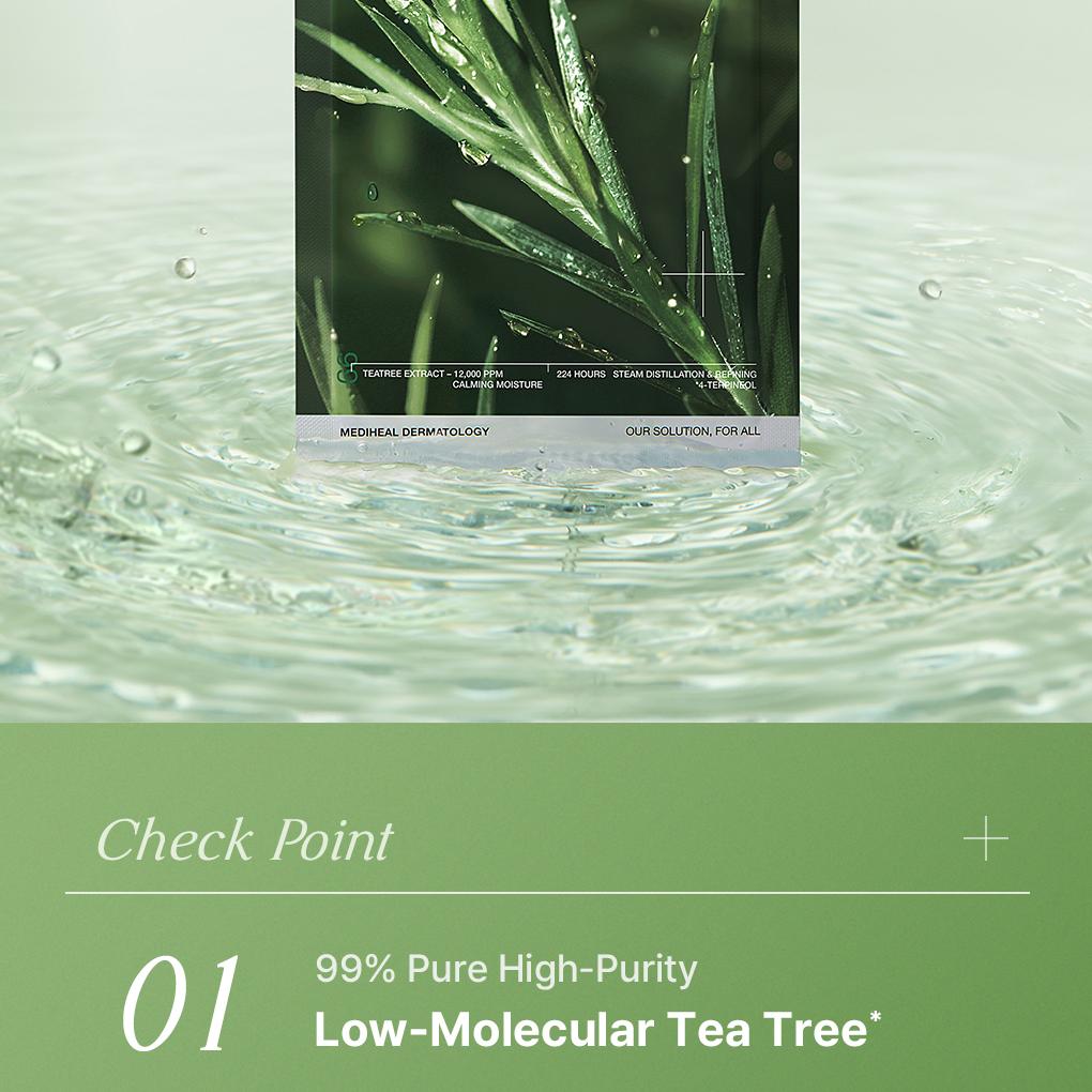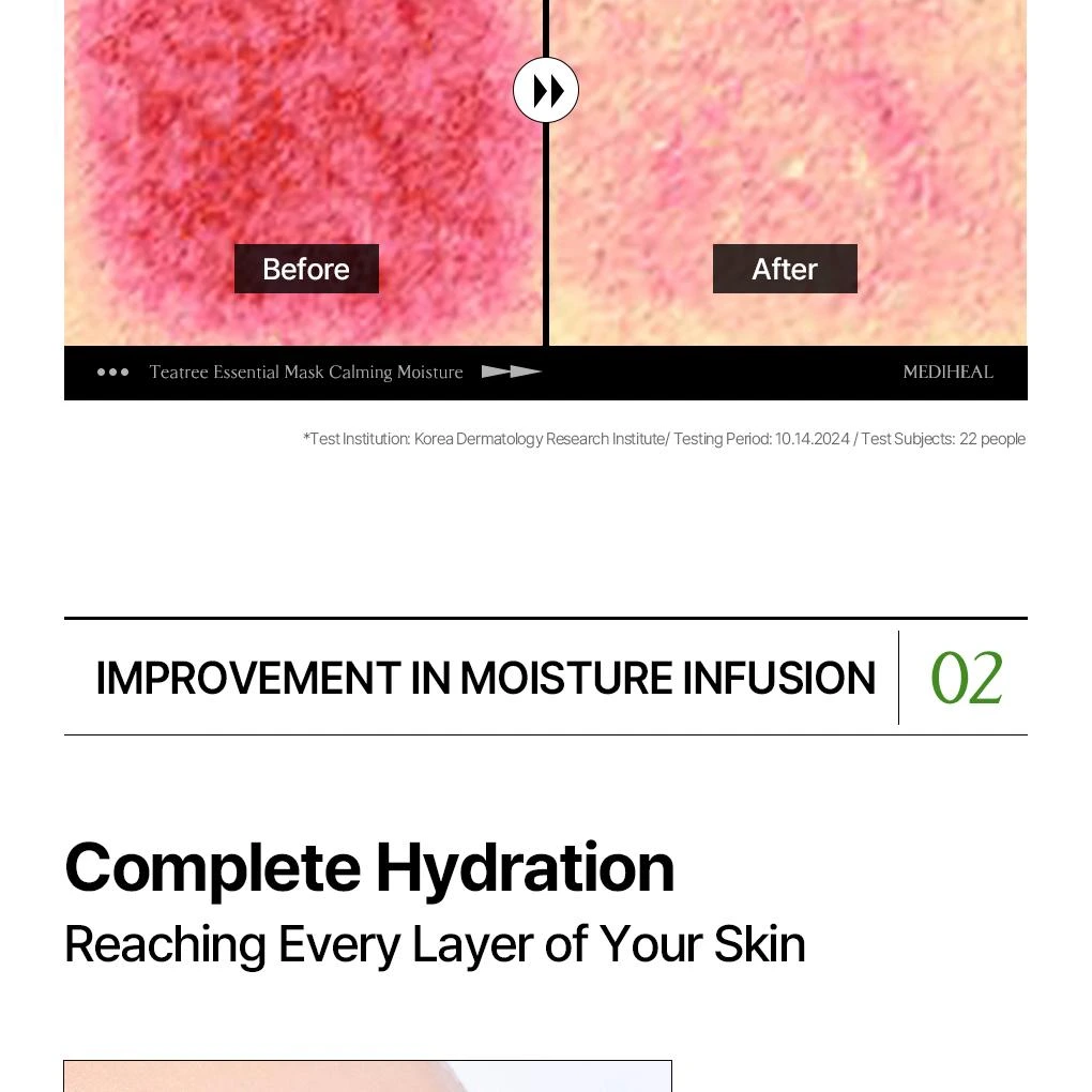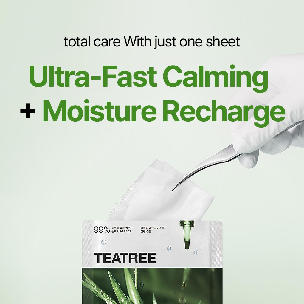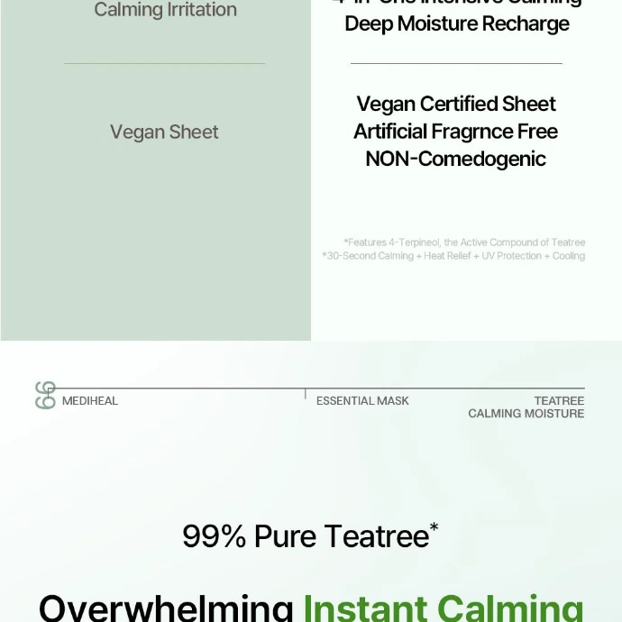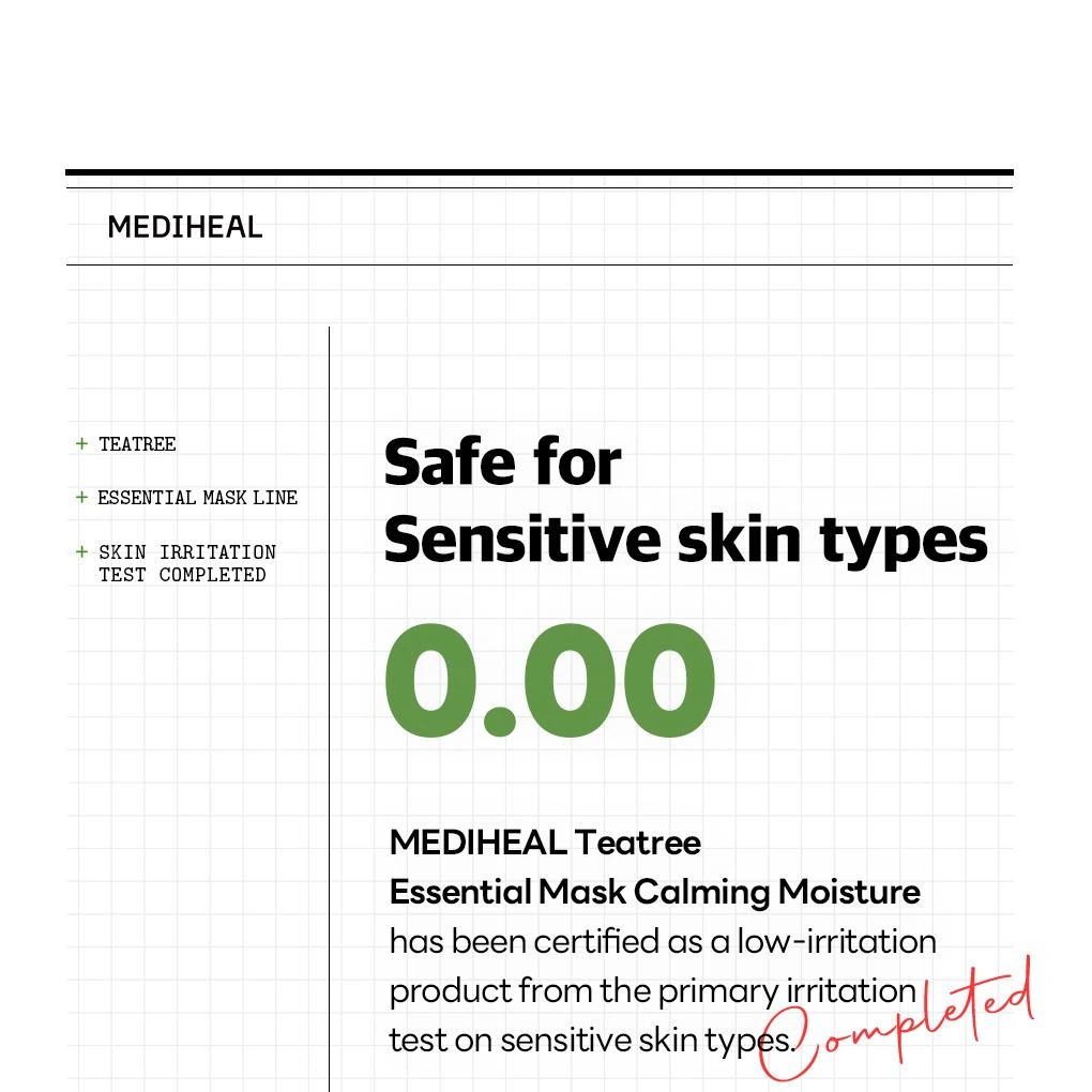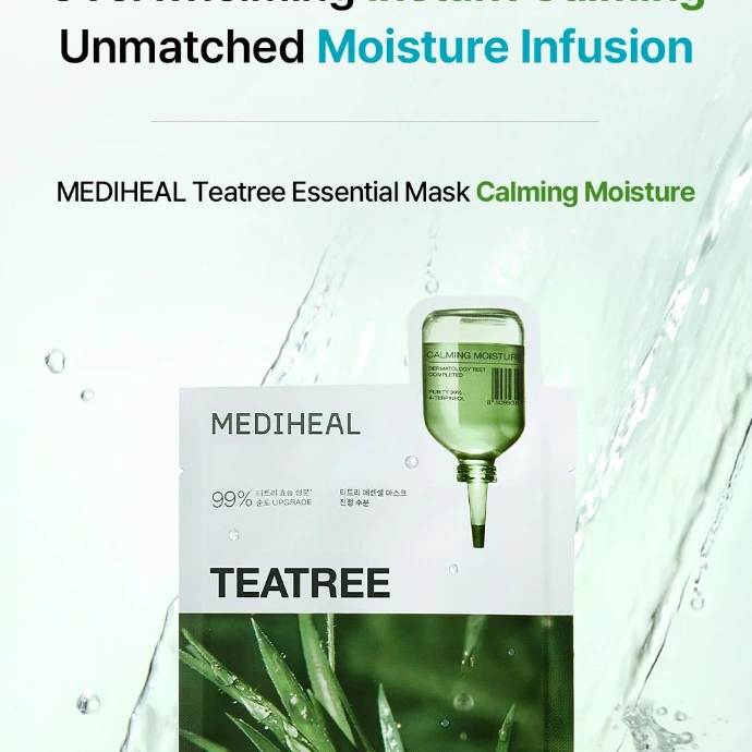 Le Teatree Essential Mask Calming Moisture de MEDIHEAL est un masque tissu apaisant spécialement conçu pour les peaux mixtes, grasses ou sujettes aux imperfections.