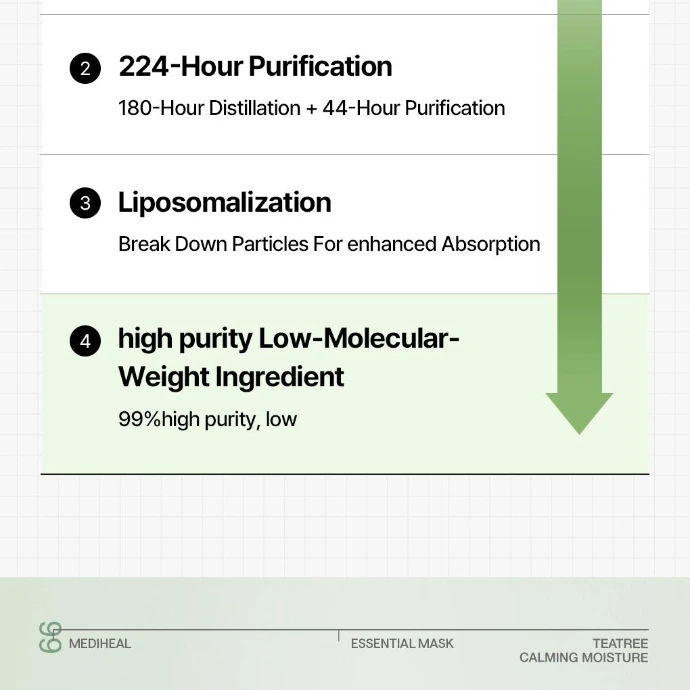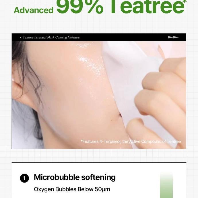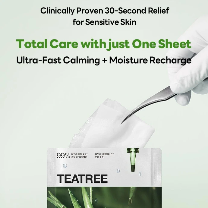 Enrichi en extrait d’arbre à thé, il aide à calmer les rougeurs visibles, à purifier la peau et à rééquilibrer la production de sébum tout en maintenant une bonne hydratation. Sa formule contribue à éliminer les impuretés, à affiner l’apparence des pores et à contrôler l’excès de brillance pour une peau plus nette et confortable. Grâce à sa feuille douce qui épouse parfaitement les contours du visage, l’essence pénètre efficacement sans laisser de fini collant. La peau paraît plus claire, apaisée, hydratée et naturellement mate après utilisation.