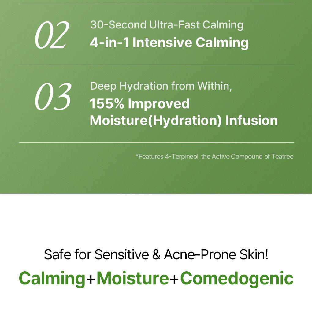 Eau, Glycérine, 1,2-Hexanediol, Méthylpropanediol, Propanediol, Hydroxyacétophénone, Extrait de Melaleuca Alternifolia (Arbre à Thé), Butylène Glycol, Panthénol, Allantoïne, Bétaïne, Tréhalose, Eau de Feuille de Melaleuca Alternifolia (Arbre à Thé), Ferment de Lactobacillus, Adénosine, Disodium EDTA, Carbomère, Huile de Feuille de Melaleuca Alternifolia (Arbre à Thé), Arginine, Octyldodéceth-16, Gomme Xanthane, Glycine, Acide Glutamique, Acide Aspartique, 4-Terpineol, Polyacrylate de Sodium, Chlorure de Sodium, Sérine, Histidine, Alanine, Thréonine, Proline, Acrylates/C10-30 Alkyl Acrylate Crosspolymer, Chlorure de Magnésium, Chlorure de Calcium