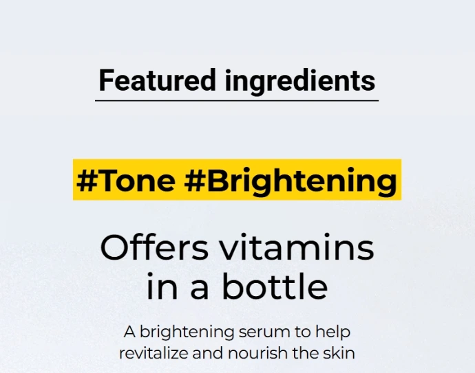 Adapté à une utilisation quotidienne, ce sérum aide à améliorer visiblement le teint irrégulier, à lisser la peau et à maintenir une hydratation durable. Sa texture légère de couleur jaune citron pénètre rapidement dans la peau et laisse une sensation fraîche avec un léger parfum d’agrumes, pour une peau plus douce, hydratée et éclatante jour après jour.