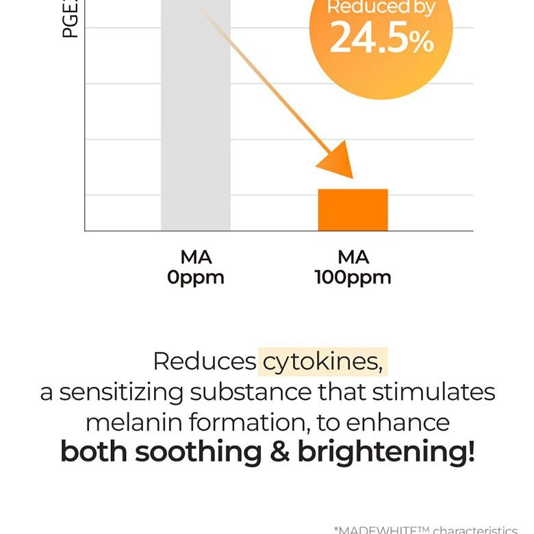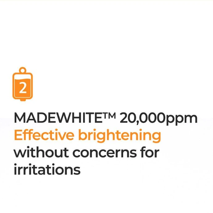 Sa formule enrichie en glutathion, vitamines C et E et niacinamide (50 000 ppm) agit efficacement pour unifier le teint, réduire l’hyperpigmentation et redonner de l’éclat aux peaux ternes et fatiguées. Grâce à des actifs apaisants et hydratants comme le panthénol et le madecassoside (MADEWHITE™ 20 000 ppm), il calme les irritations tout en renforçant la barrière cutanée, ce qui le rend idéal même pour les peaux sensibles et acnéiques.
