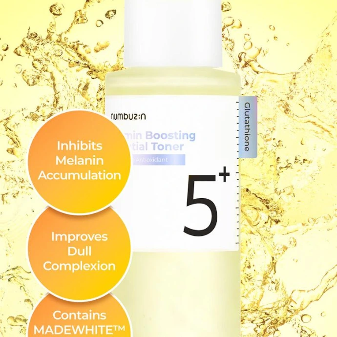 Le No.5 Vitamin Boosting Essential Toner de NUMBUZIN est un toner éclat conçue comme première étape de votre routine pour revitaliser la peau, illuminer le teint et atténuer visiblement les taches pigmentaires.