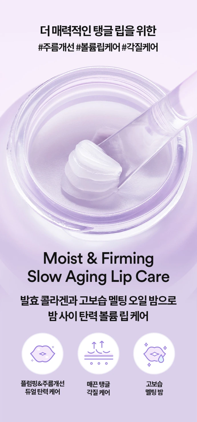Sa formule enrichie en collagène fermenté améliore la fermeté et soutient un effet anti-âge (slow aging) visible après 4 semaines d’utilisation quotidienne. Ce soin agit également comme un traitement hydratant et nourrissant profond, aidant à retenir l’humidité et à éliminer les cellules mortes pour des lèvres plus douces et uniformes. Enrichi en huile essentielle de lavande, il procure une sensation apaisante et relaxante, tandis que l’huile d’olive, riche en vitamine E et polyphénols, protège et nourrit intensément les lèvres.